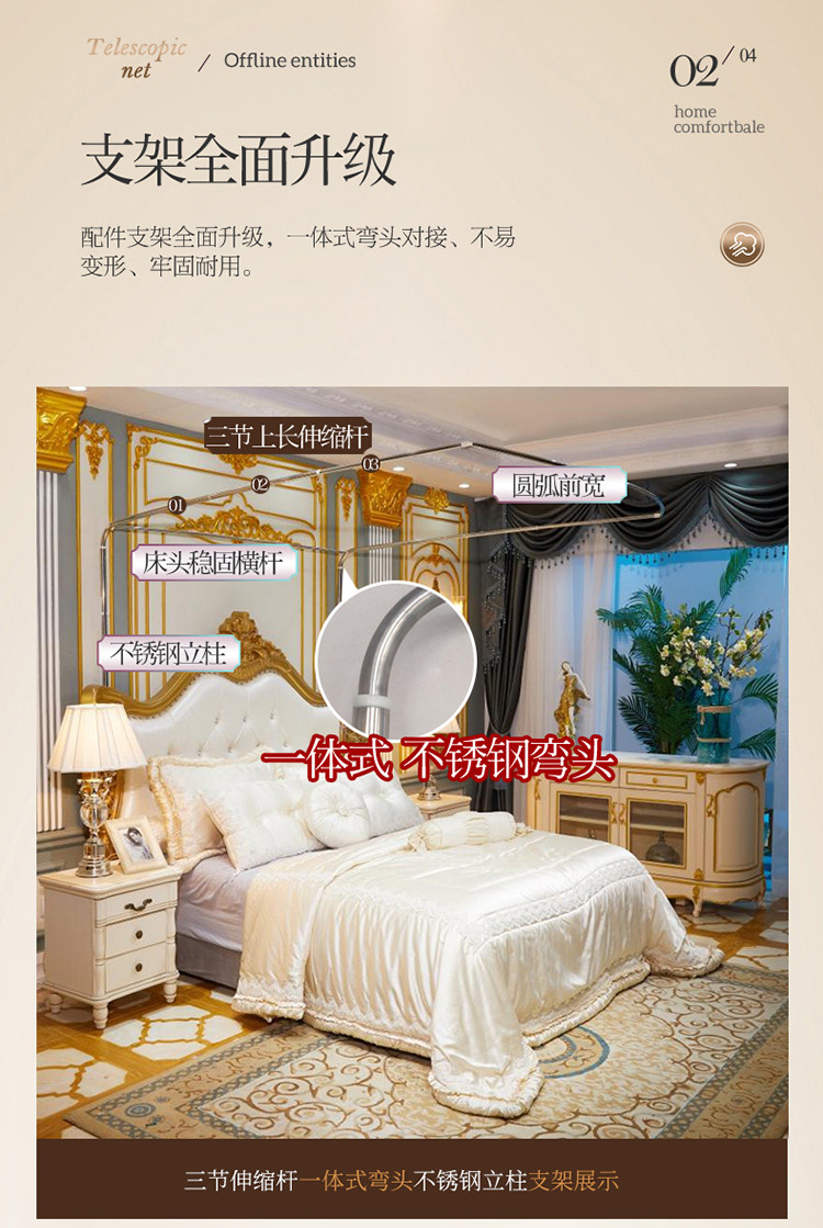 (总)舞夜盛世2025新款钓鱼竿伸缩宫廷落地蚊帐S-01(二),淡雅灰,玫瑰粉,奶油白,樱花玉