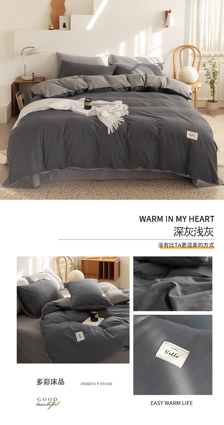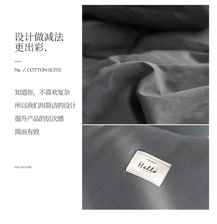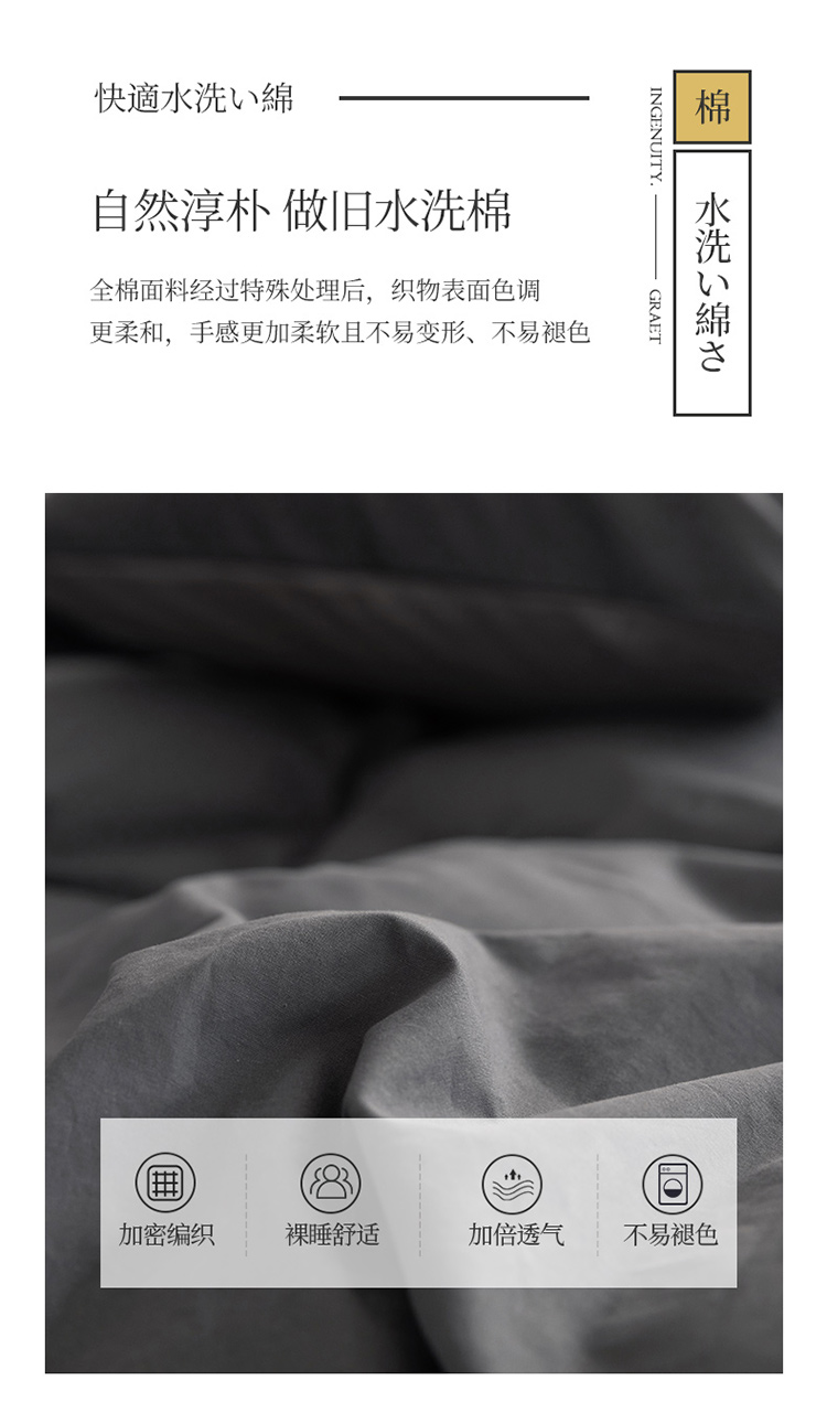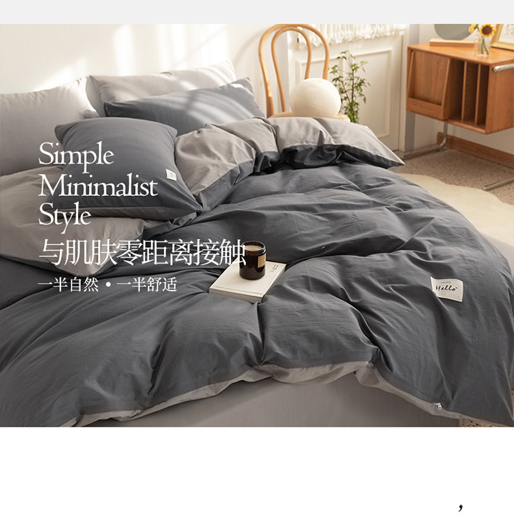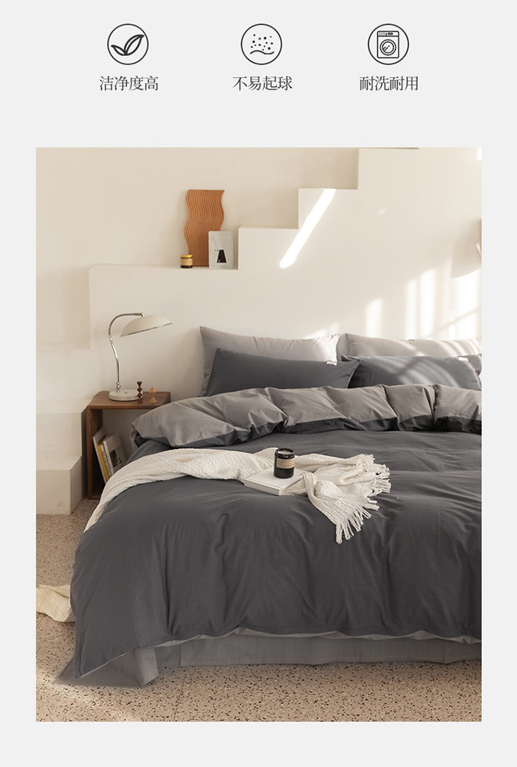 商品名称:蓝巢 2021新款全棉水洗棉混搭款四件套深灰浅灰