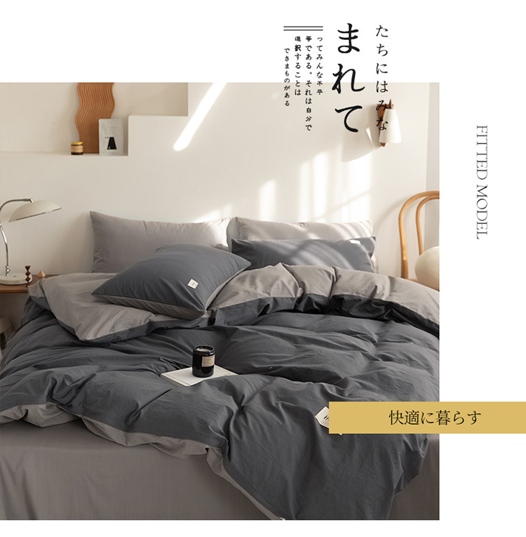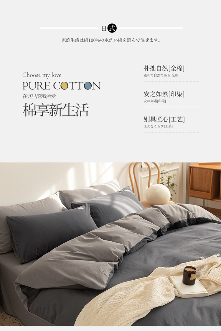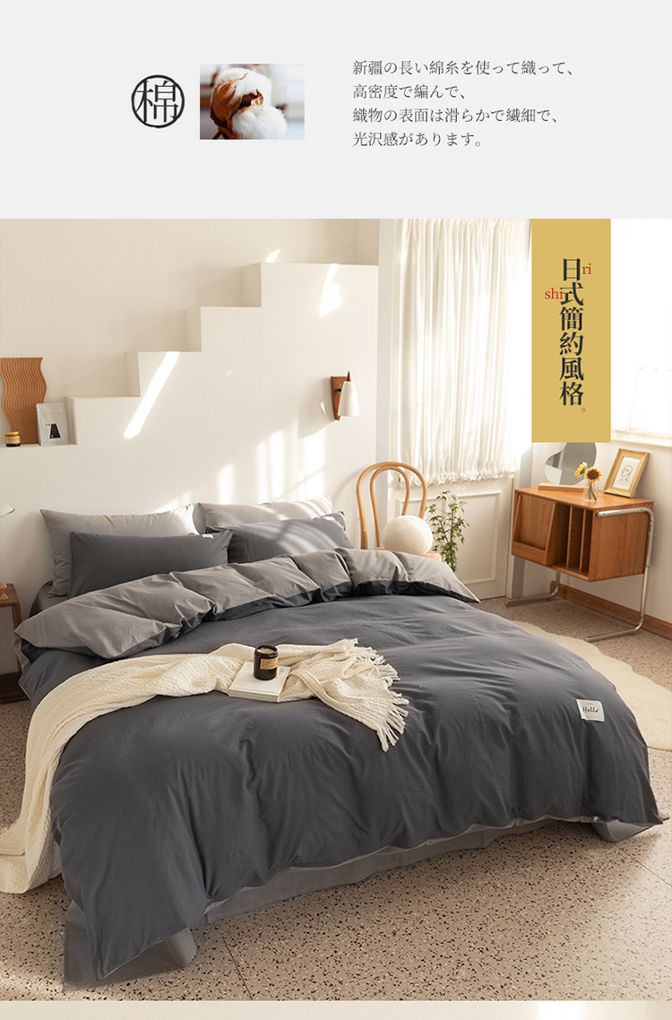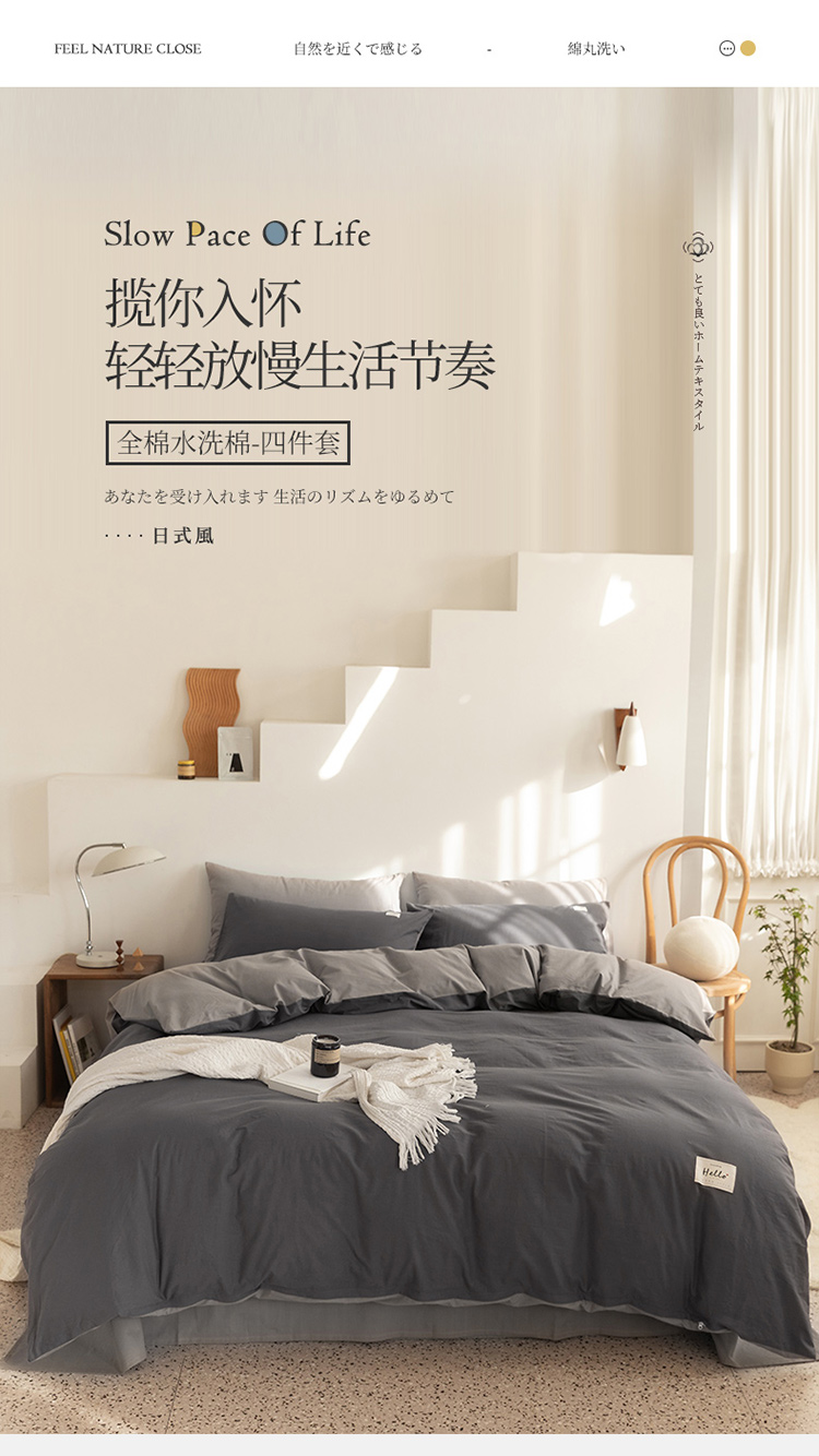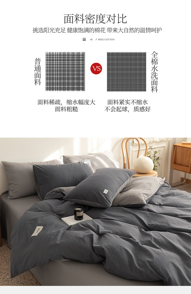 商品名称:蓝巢 2021新款全棉水洗棉混搭款四件套深灰浅灰