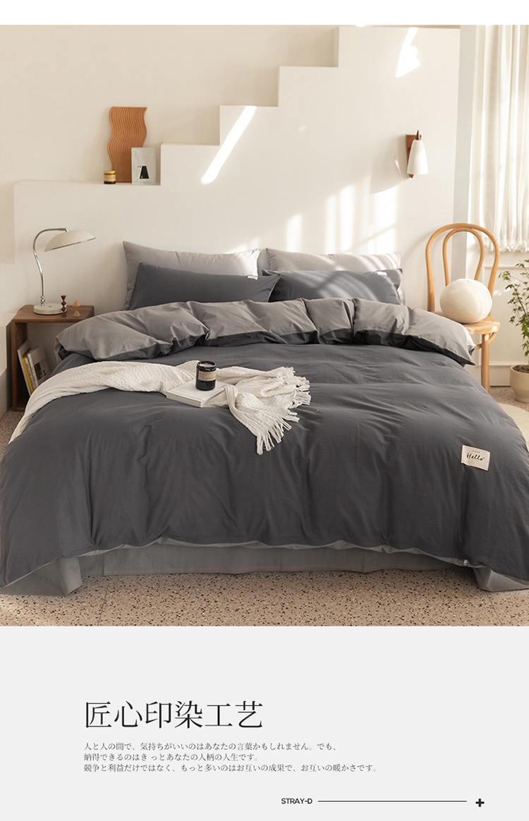 蓝巢 2021新款全棉水洗棉混搭款四件套深灰浅灰