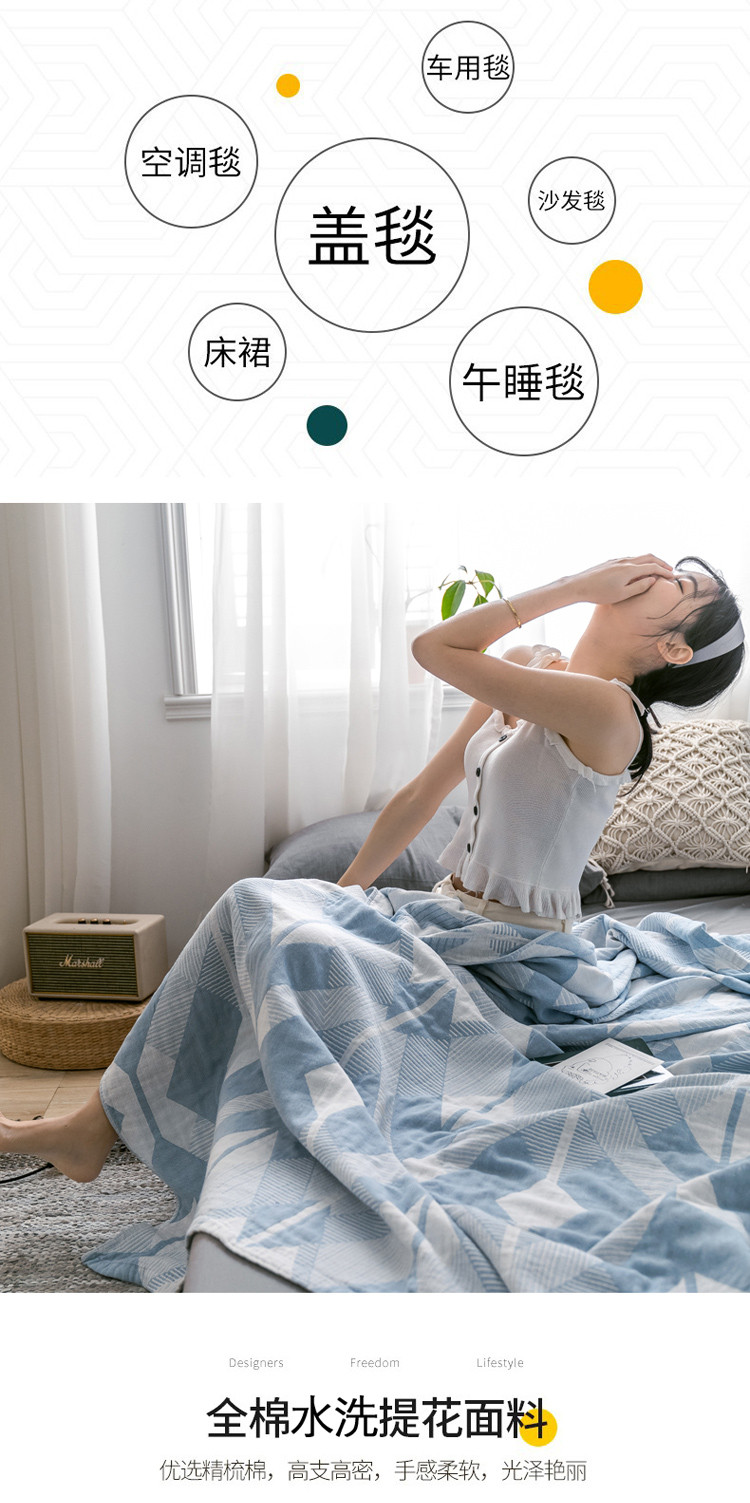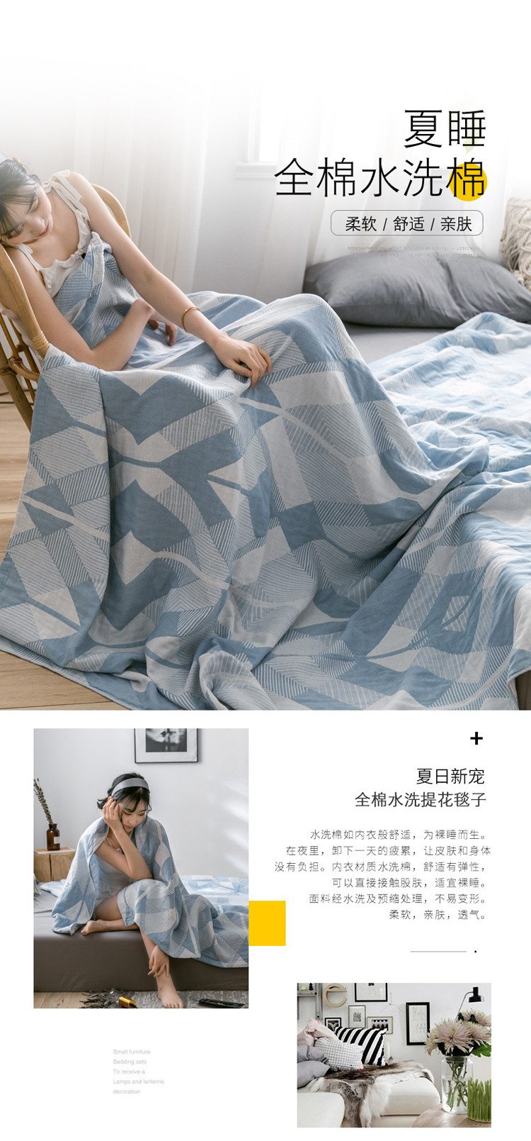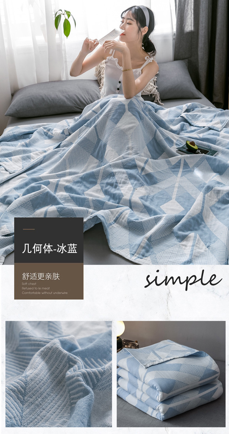 商品名称:朴尔 2021爆款三层水洗棉全棉纱布毛巾被 几何体-冰蓝