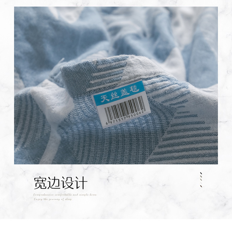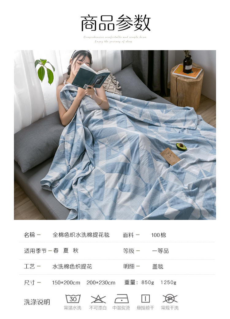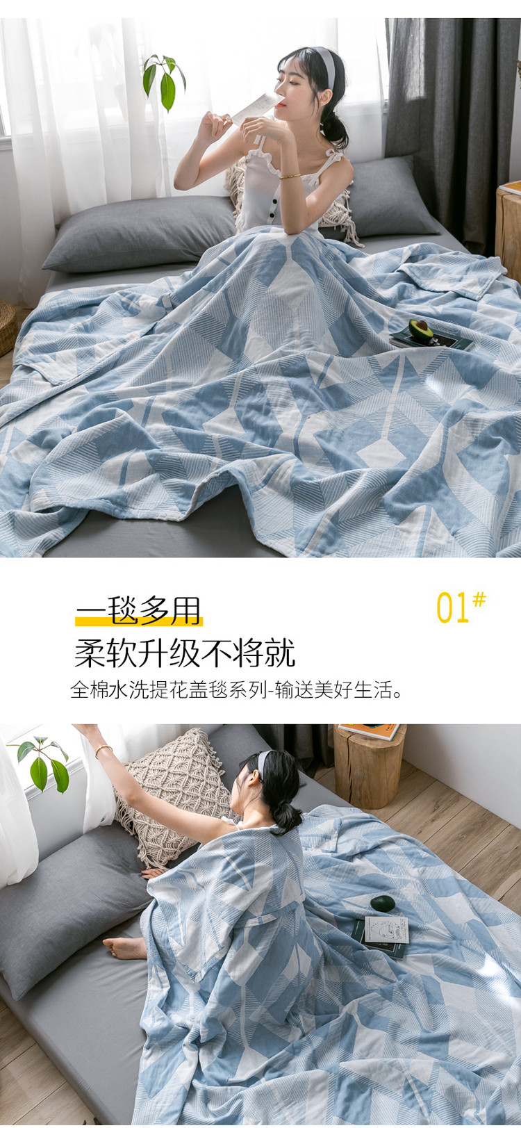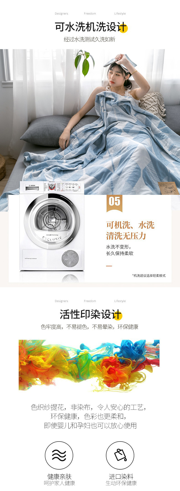 商品名称:朴尔 2021爆款三层水洗棉全棉纱布毛巾被 几何体-冰蓝