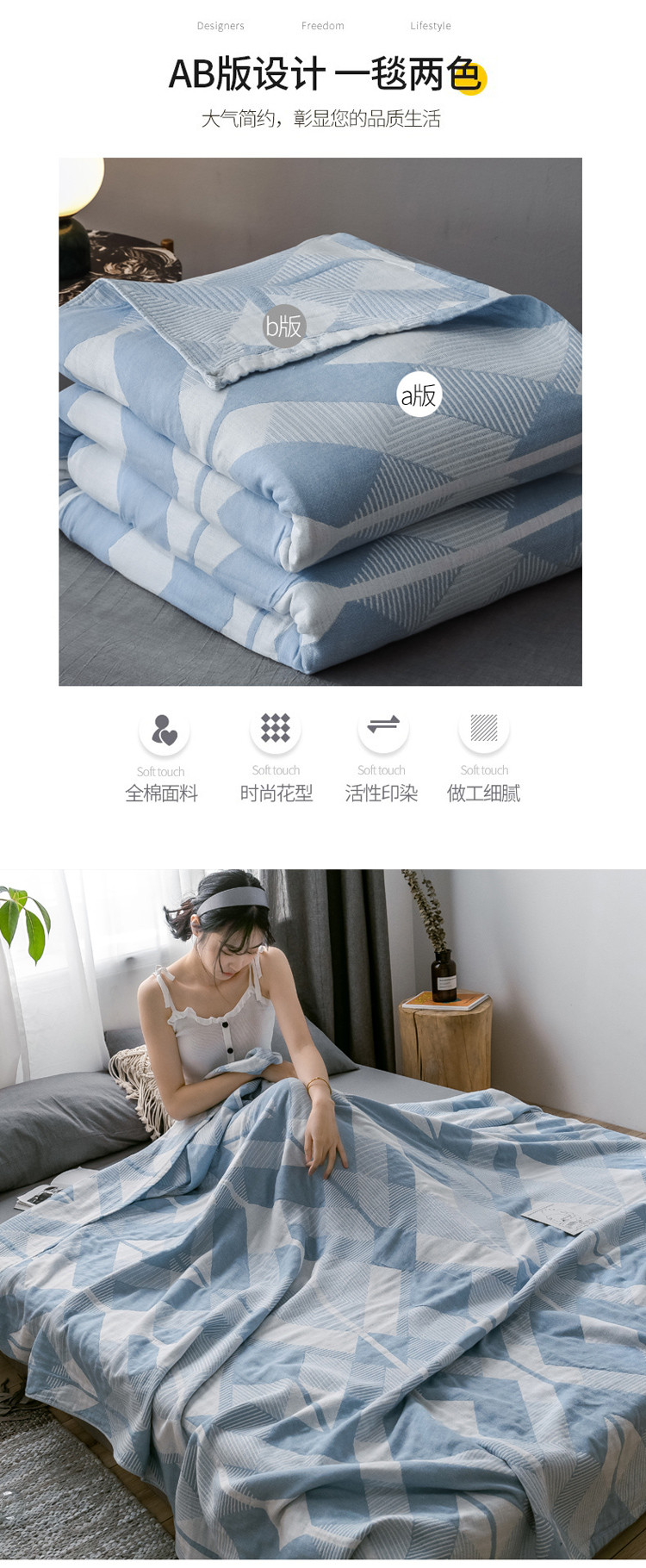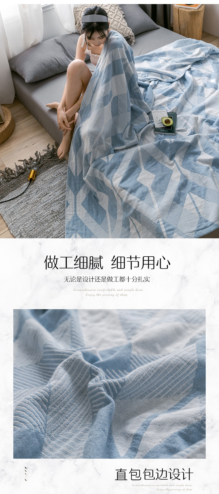 朴尔 2021爆款三层水洗棉全棉纱布毛巾被 几何体-冰蓝
