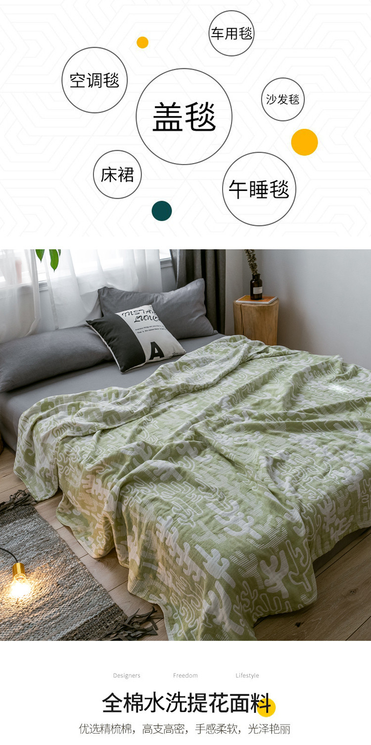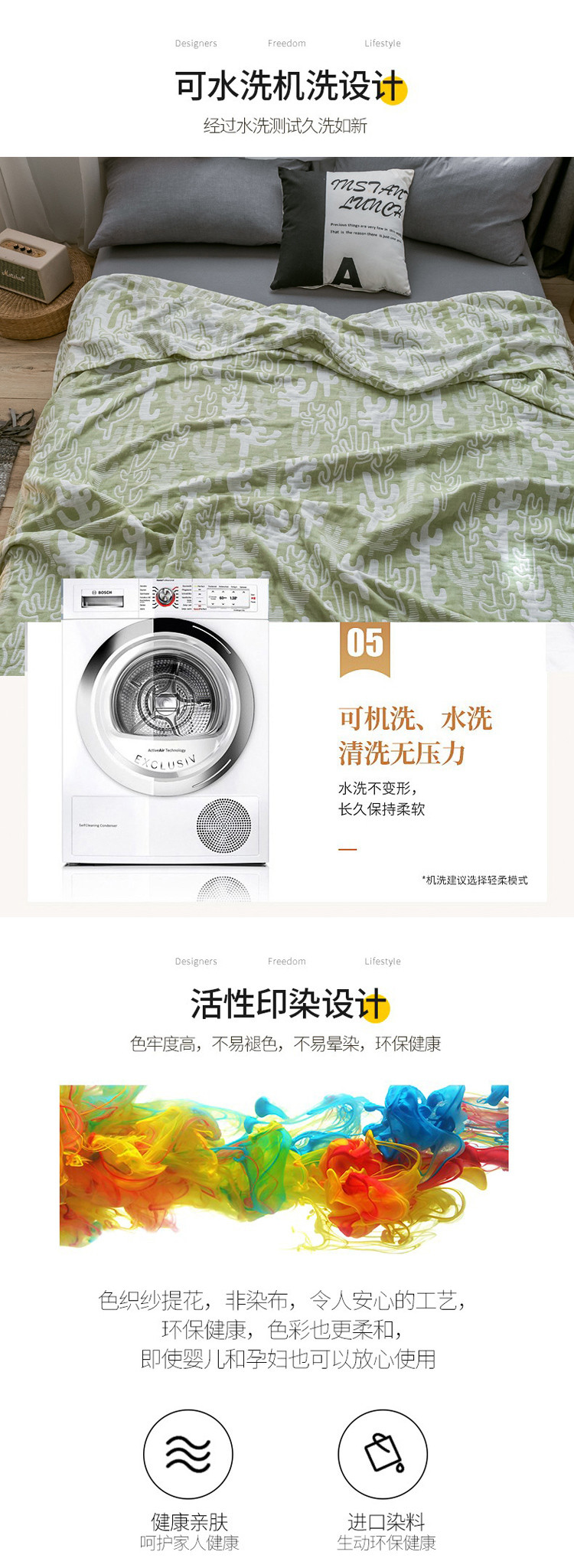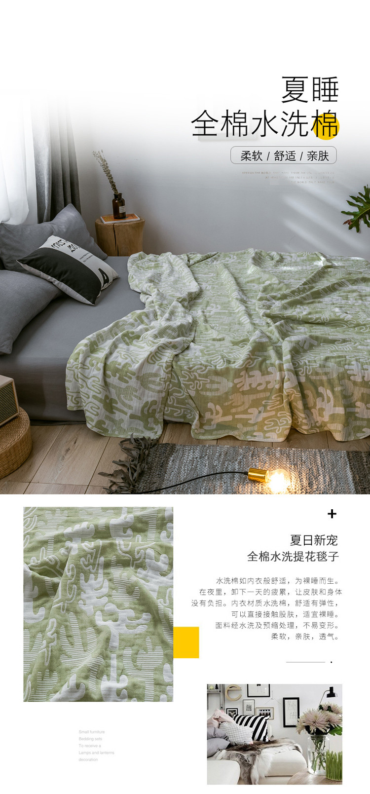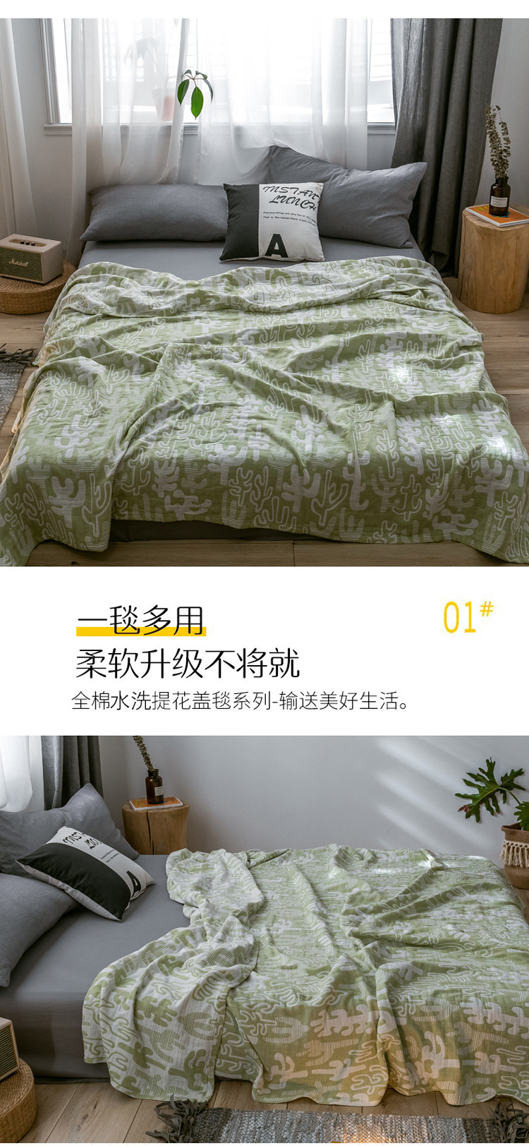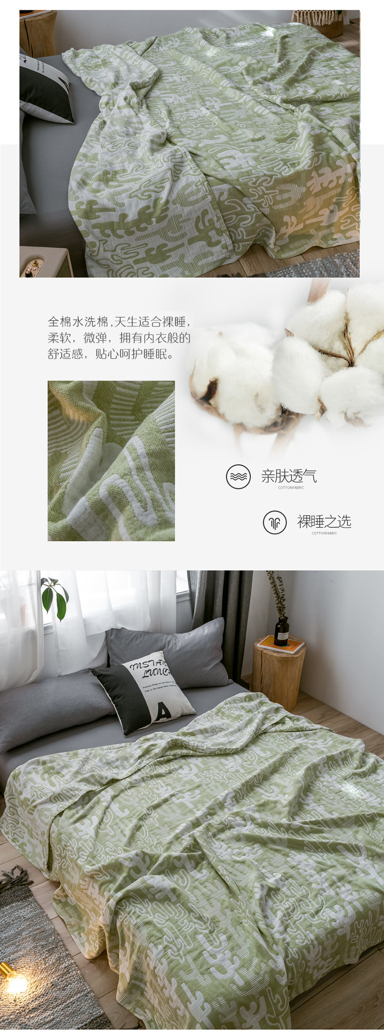商品名称:朴尔 2021爆款三层水洗棉全棉纱布毛巾被 仙人掌-绿