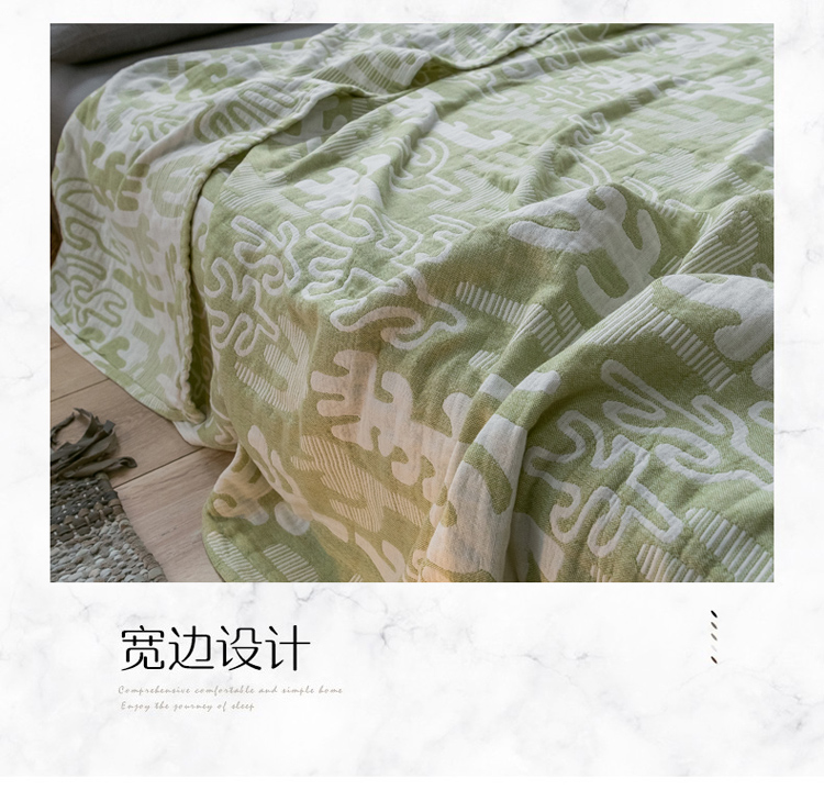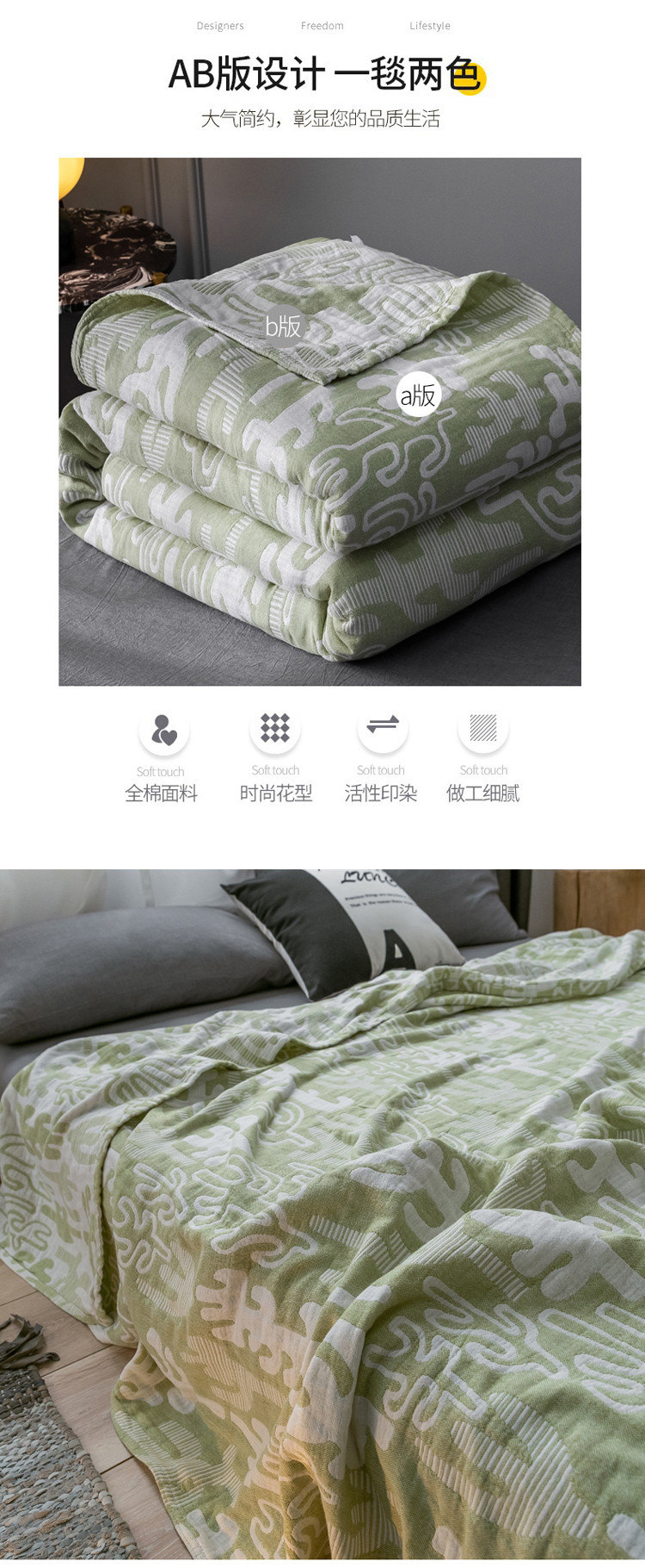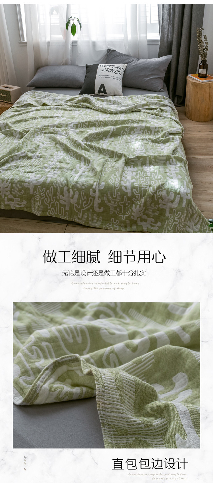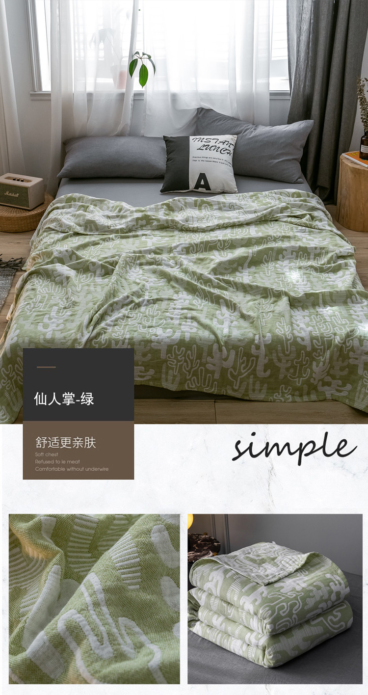 朴尔 2021爆款三层水洗棉全棉纱布毛巾被 仙人掌-绿