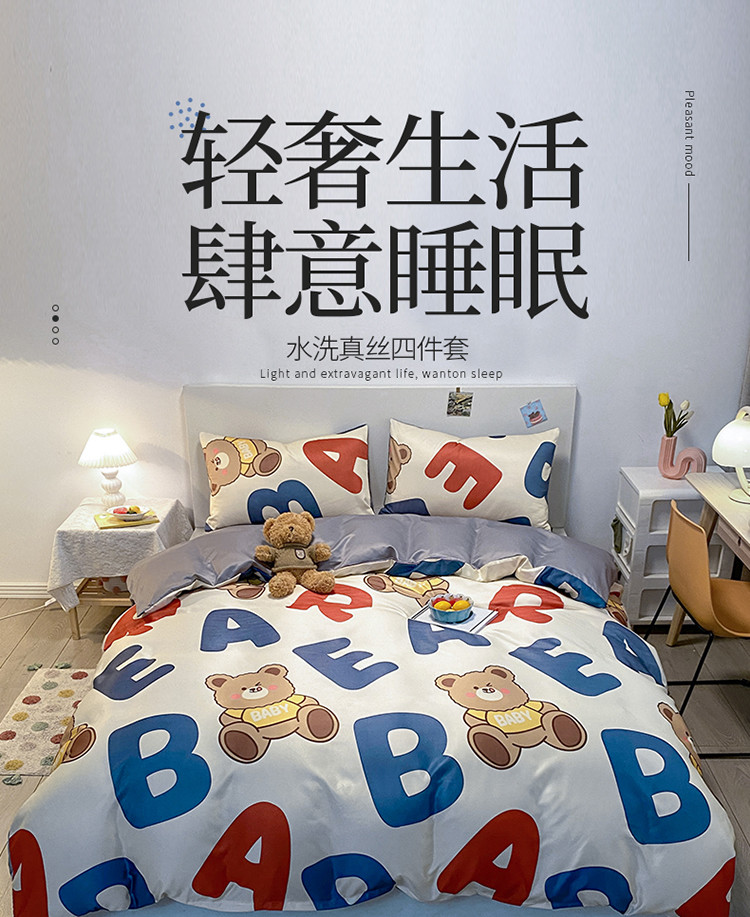 琪格格纺织 2022新款水洗真丝印花四件套 呆萌熊