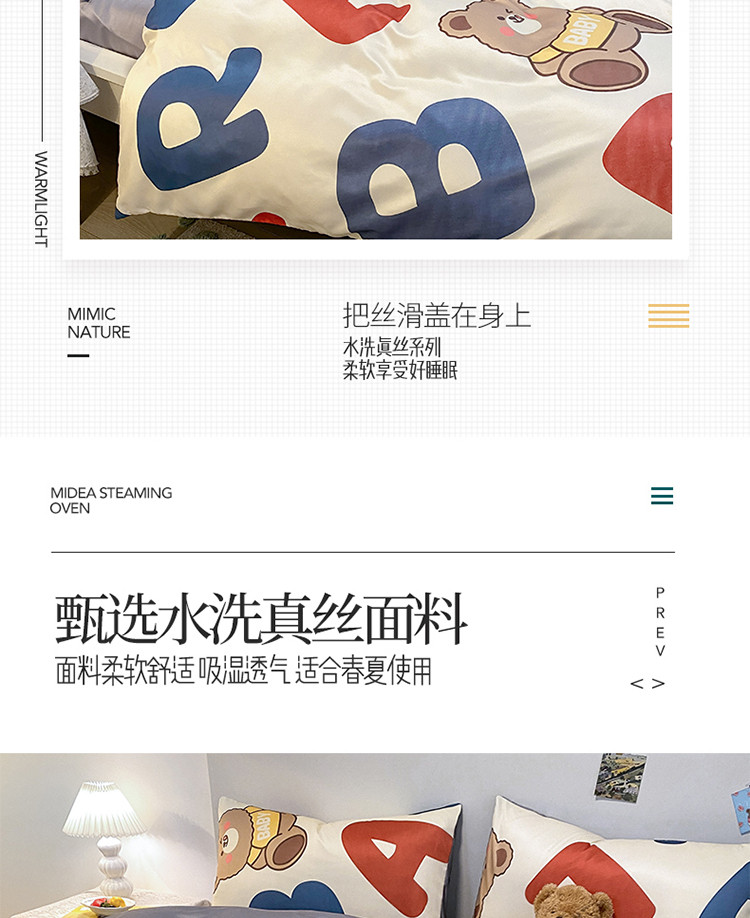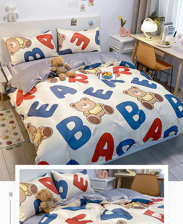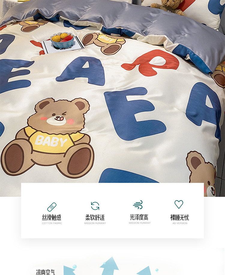 商品名称:琪格格纺织 2022新款水洗真丝印花四件套 呆萌熊