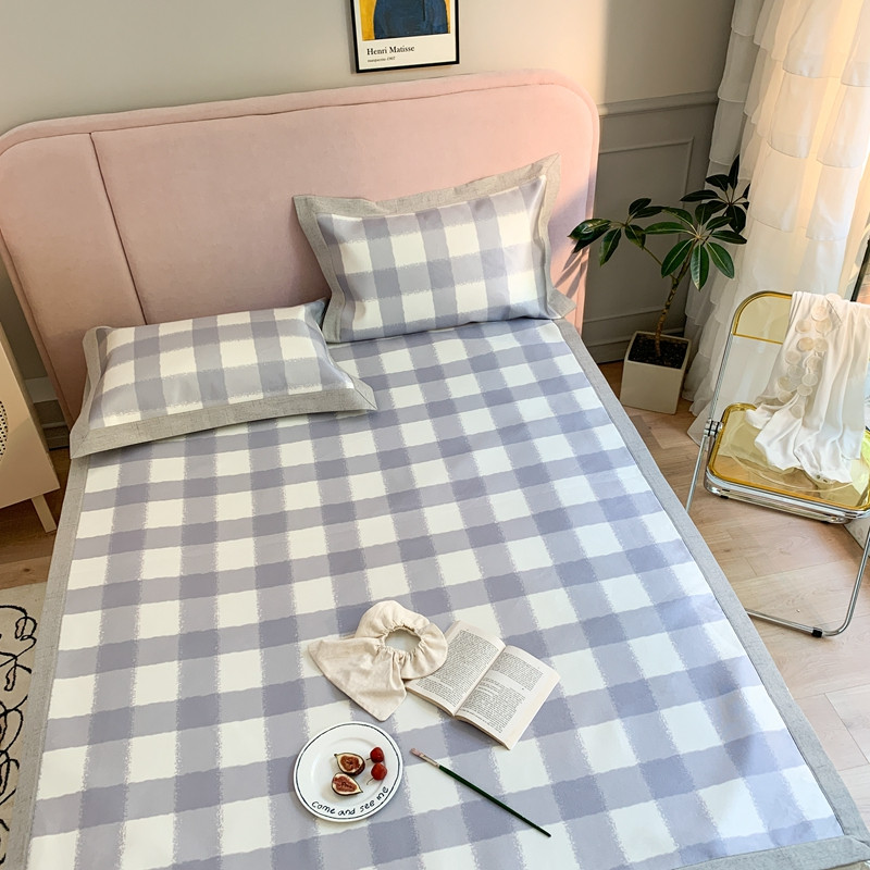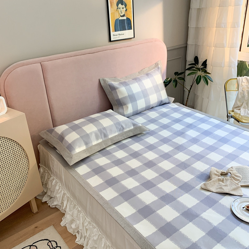 时年家纺 2021新款卡通水洗冰露丝养生凉席 海蓝格
