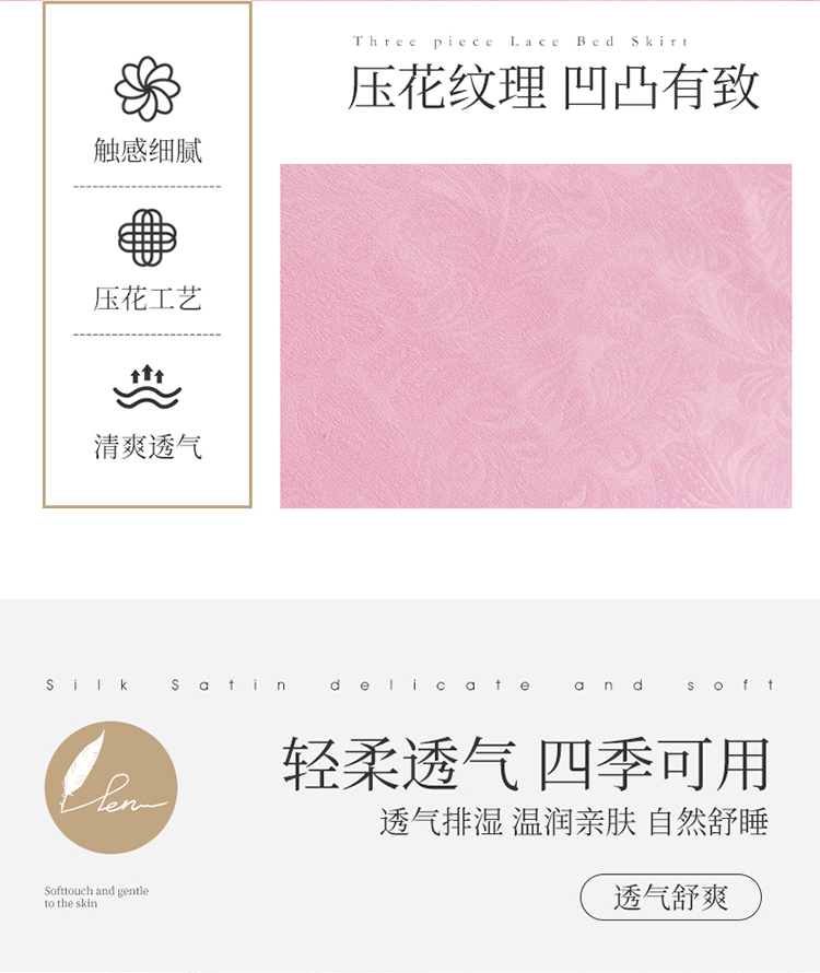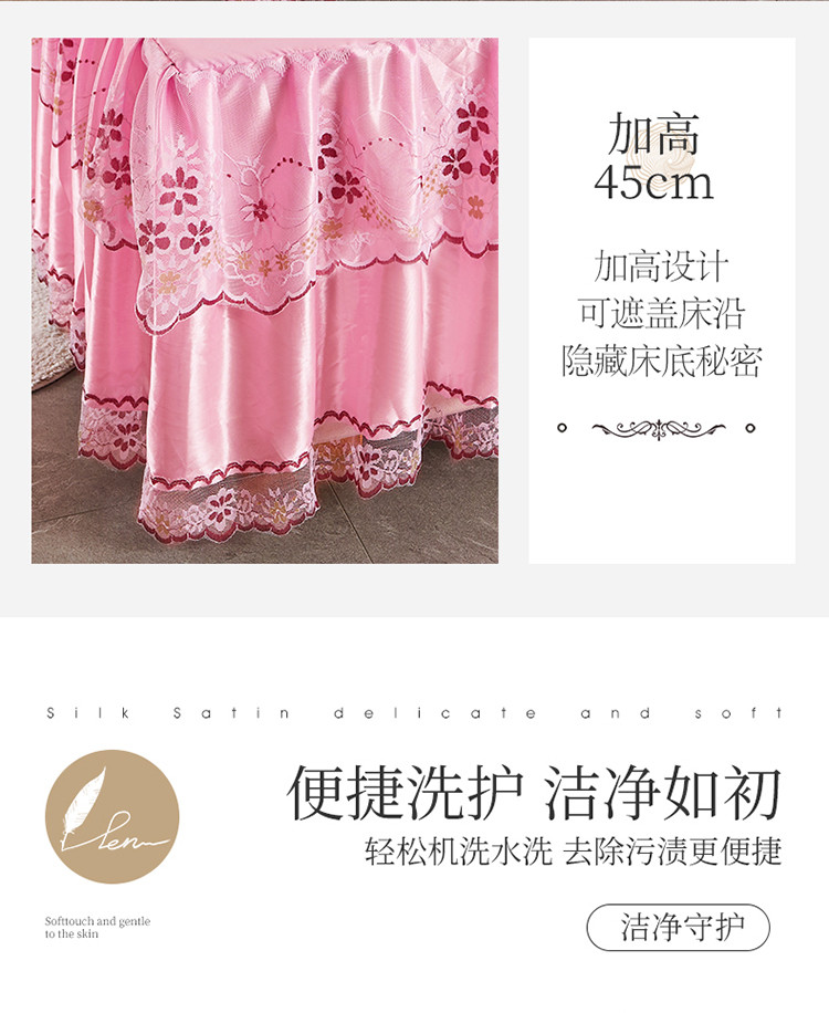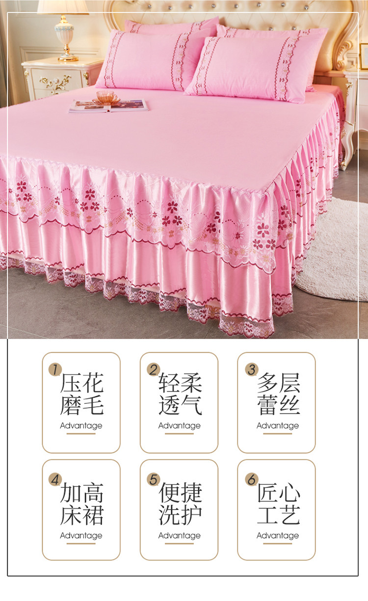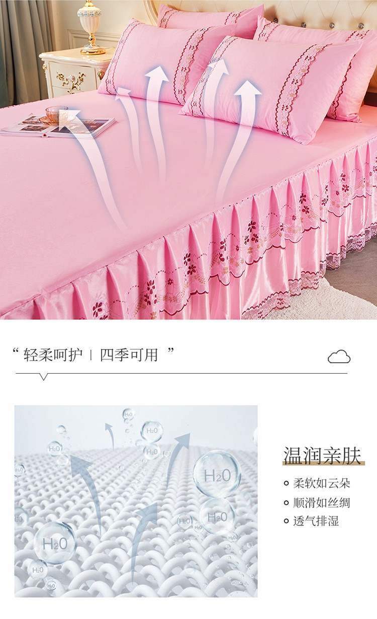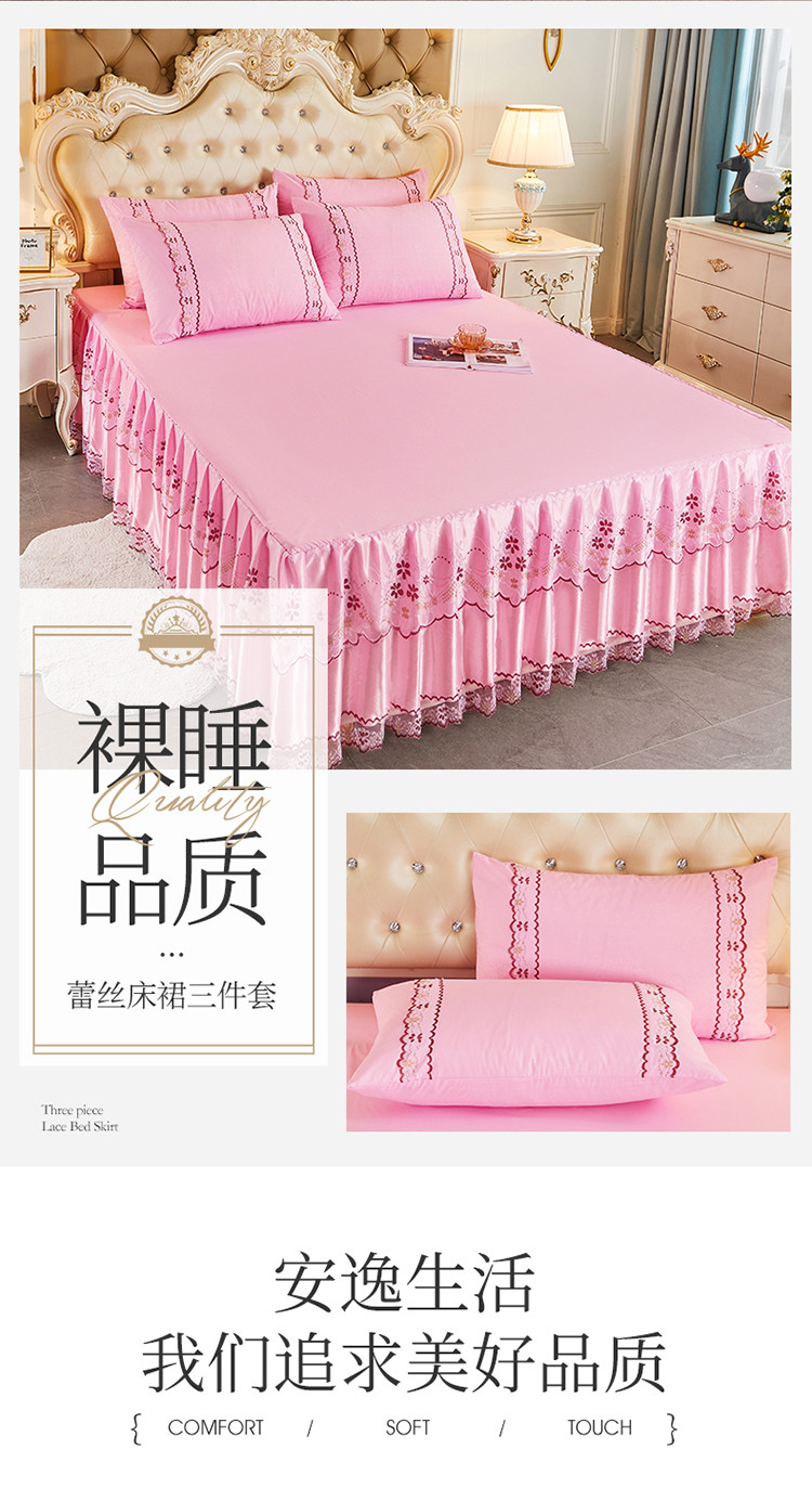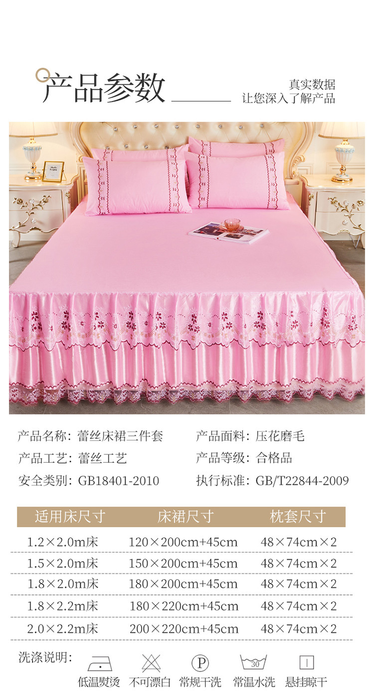 商品名称:情恒2025新款蕾丝床裙三件套梦恋款 梦恋-粉色