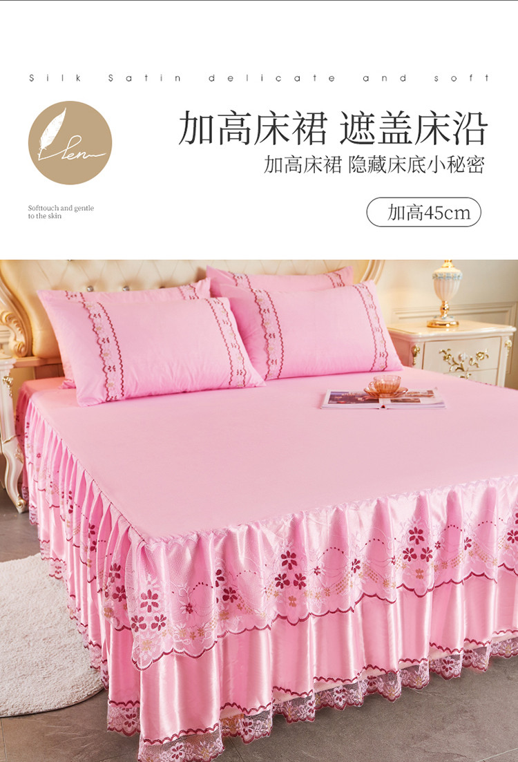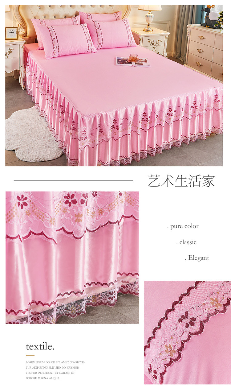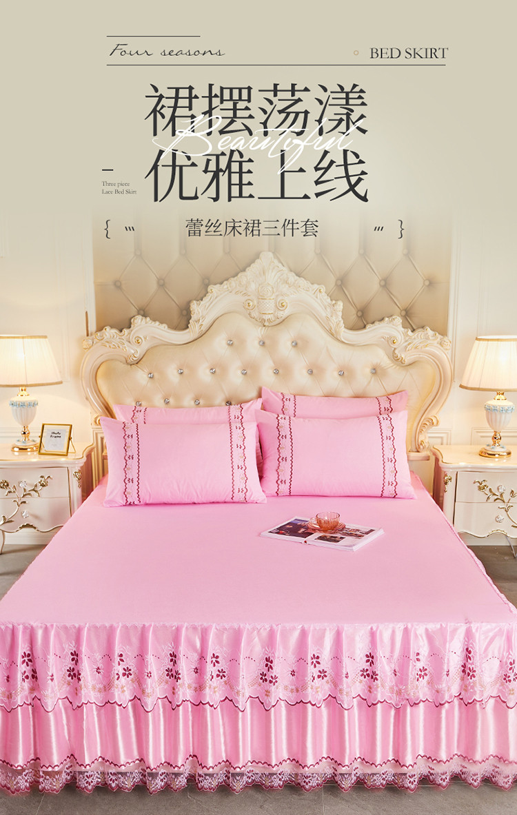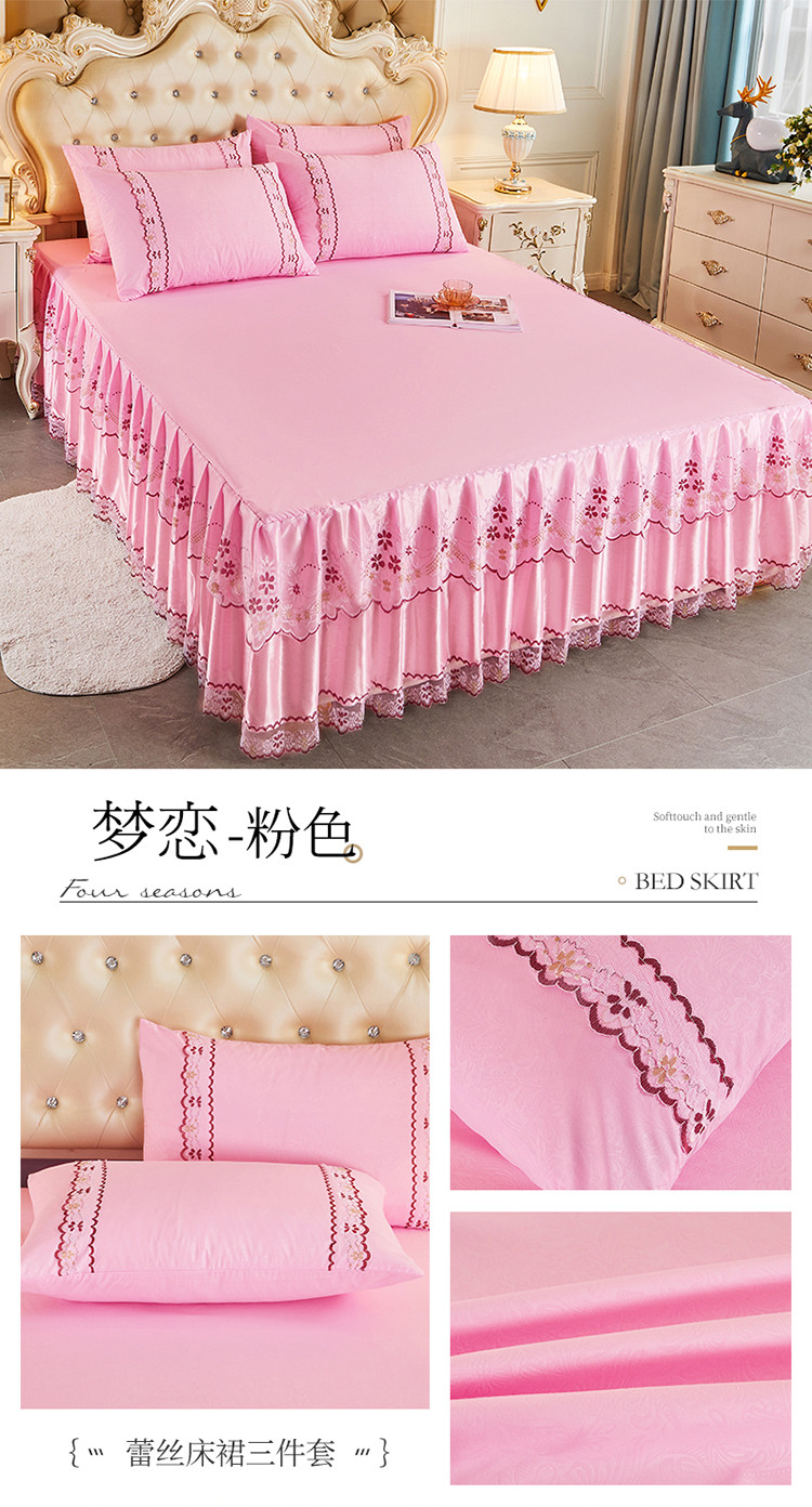 情恒2025新款蕾丝床裙三件套梦恋款 梦恋-粉色