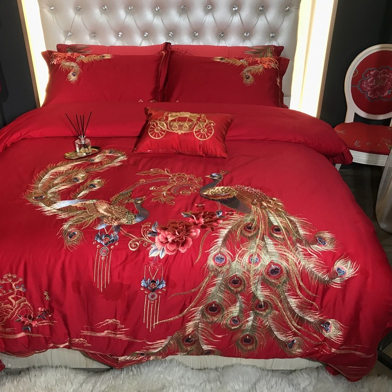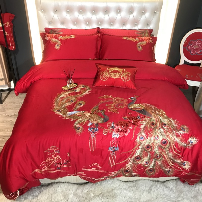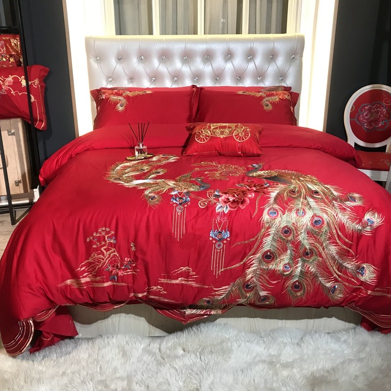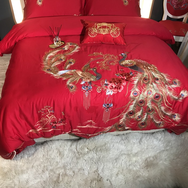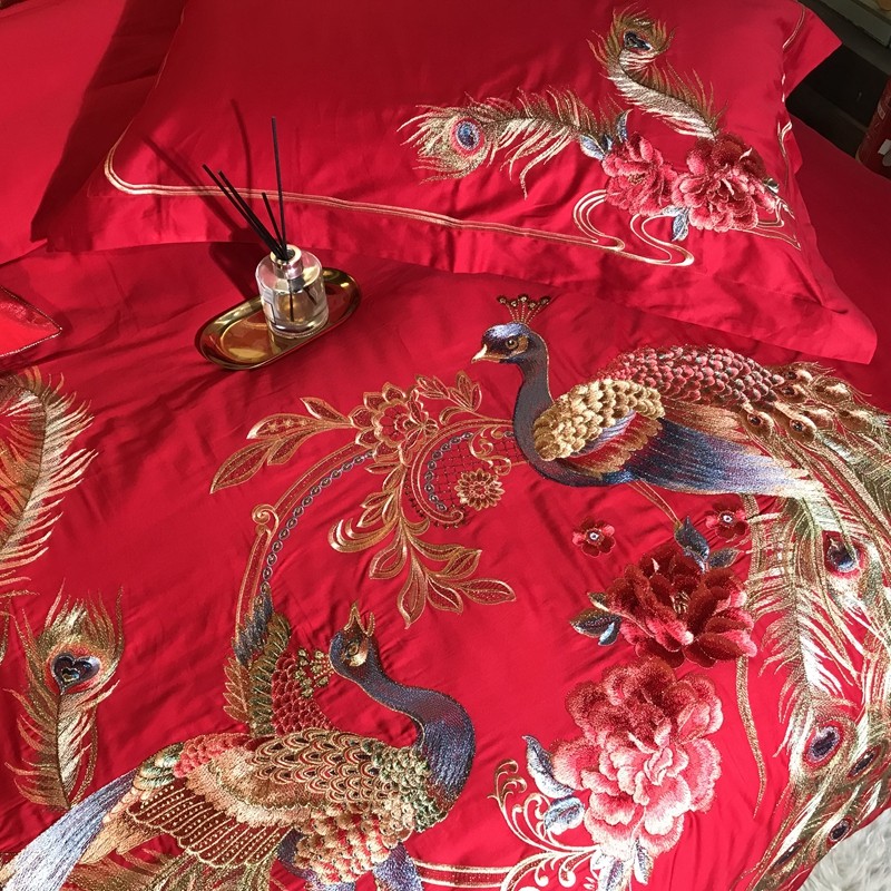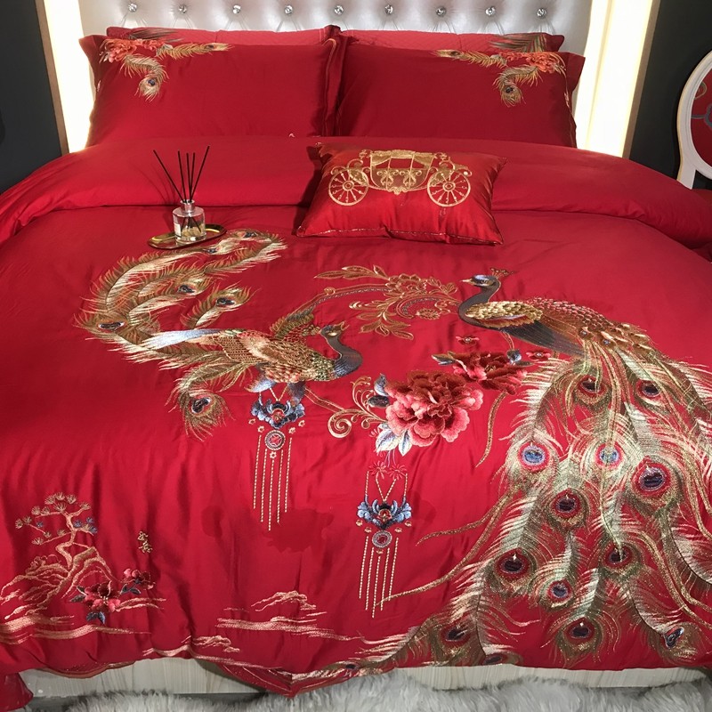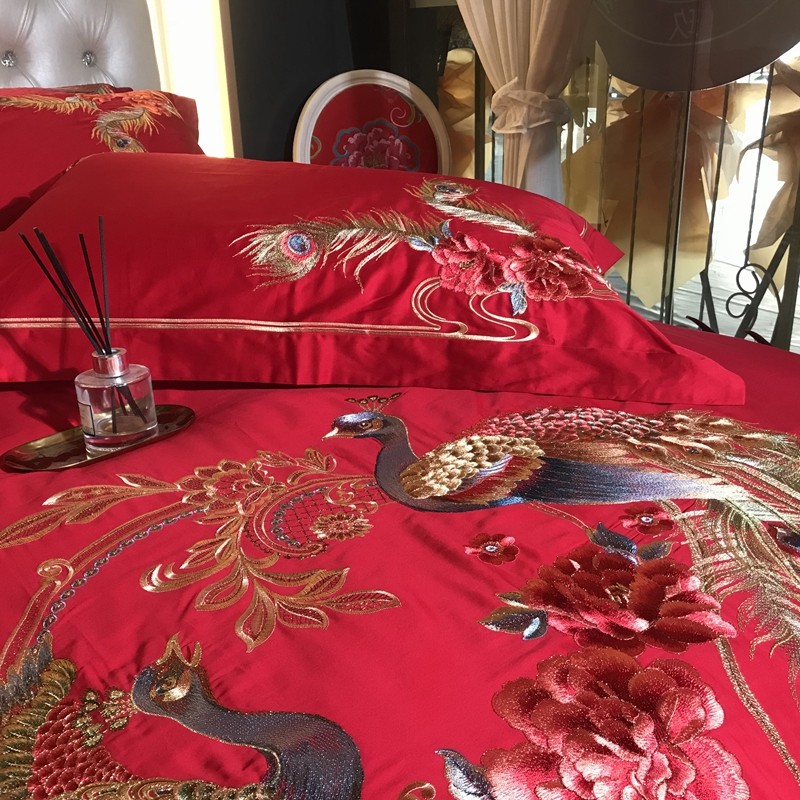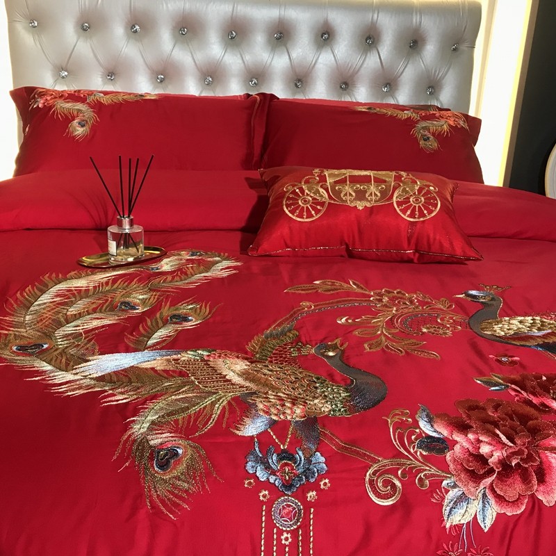 玖玖爱 2021新款100支婚庆绣花四件套 良缘凤缔