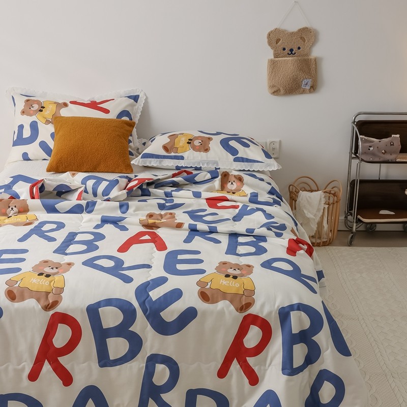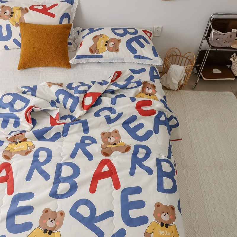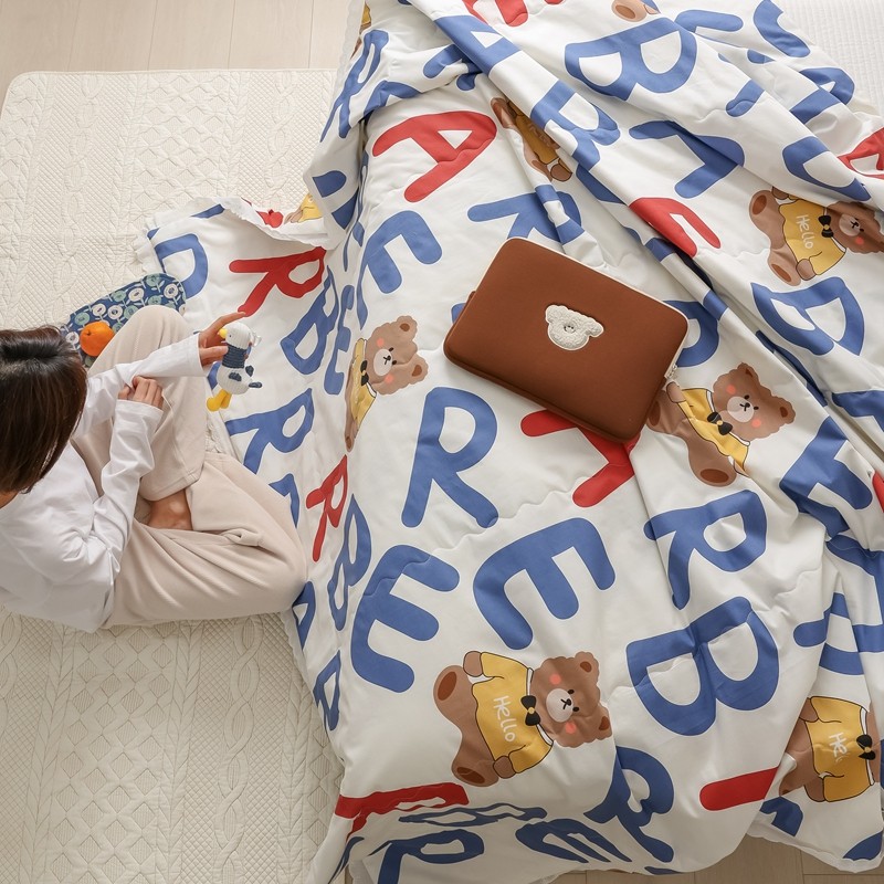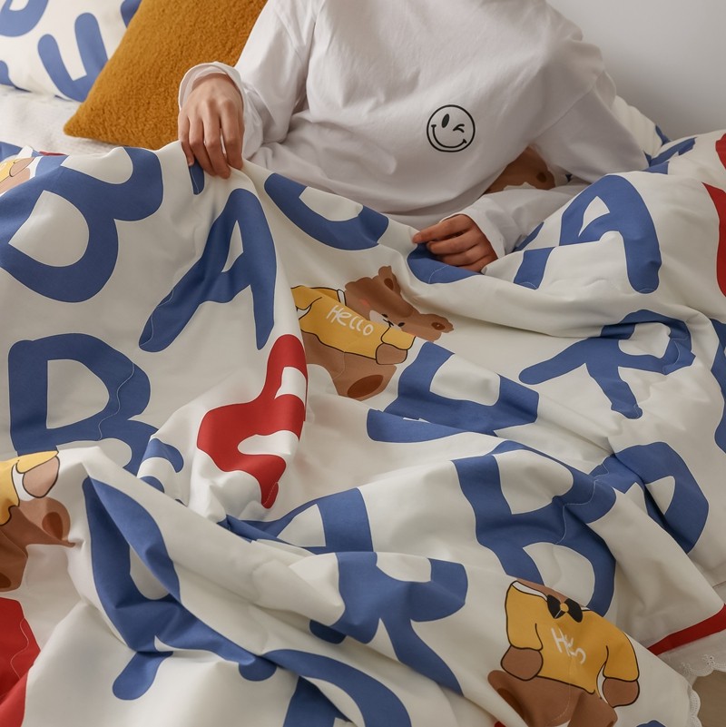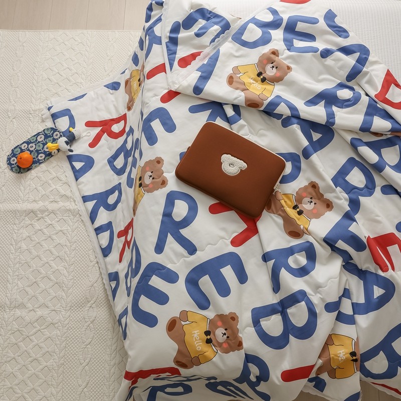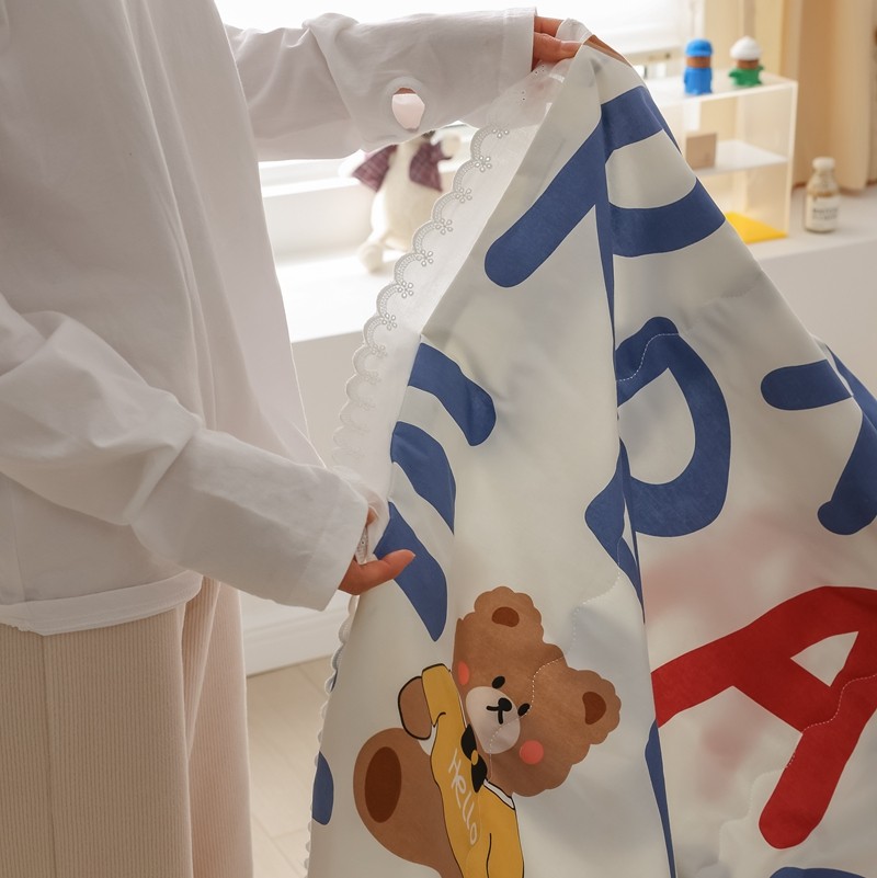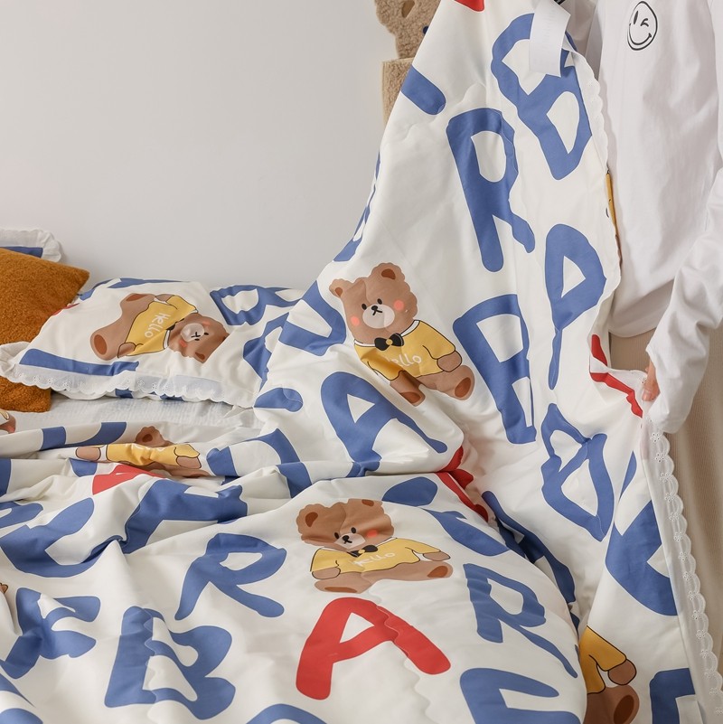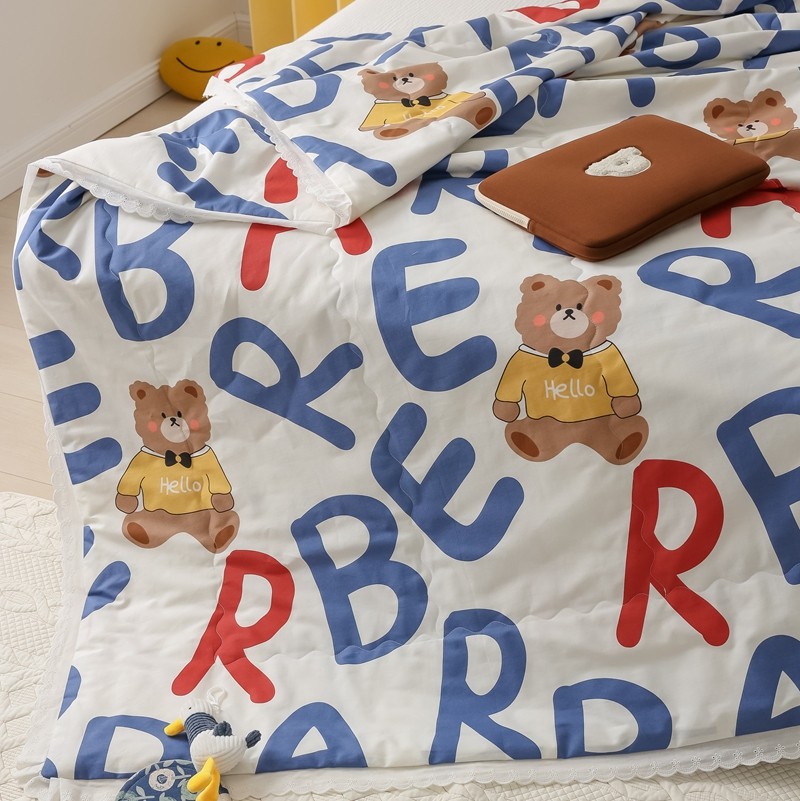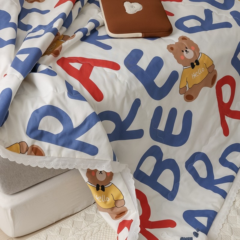 丽笙 2021新款全棉印花花边夏被 字母熊米