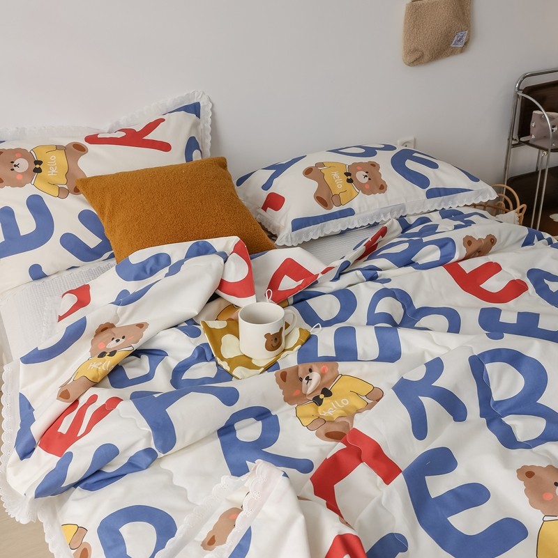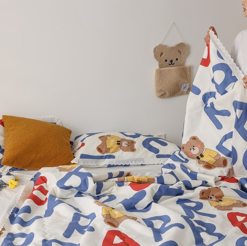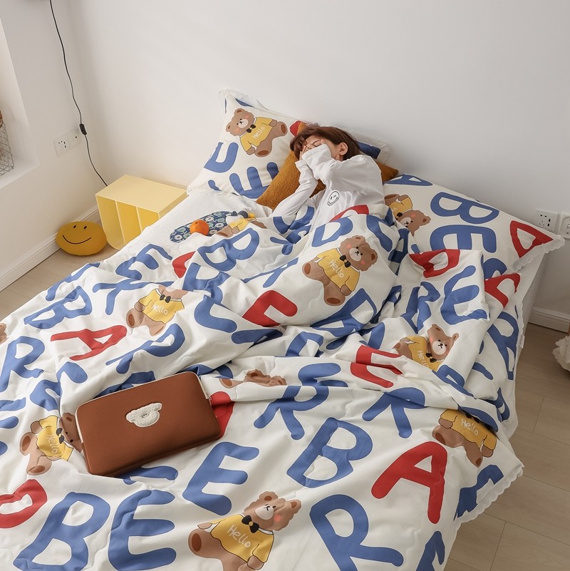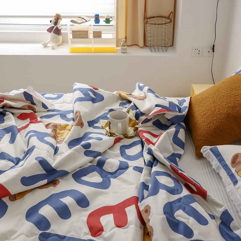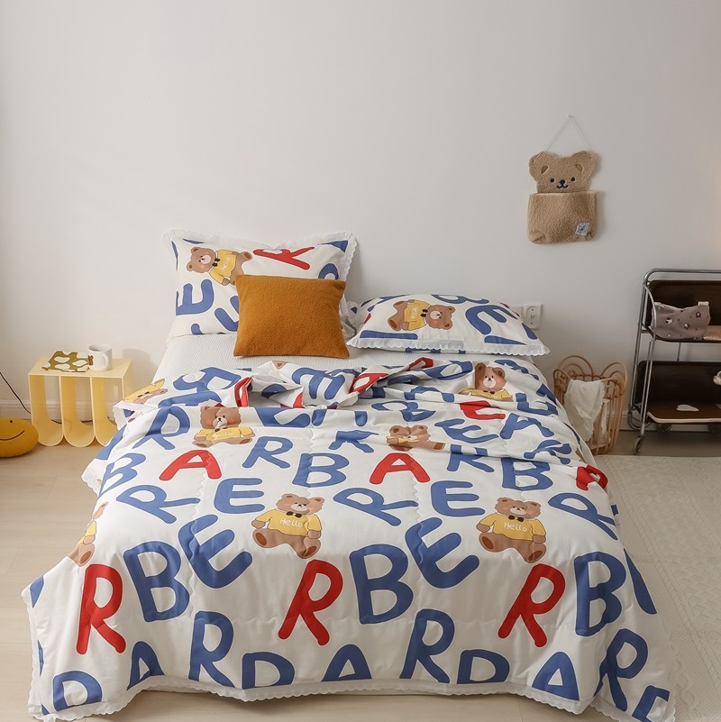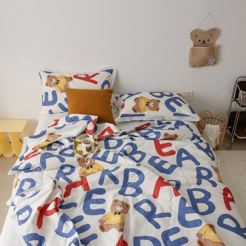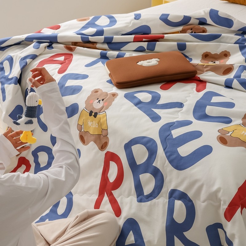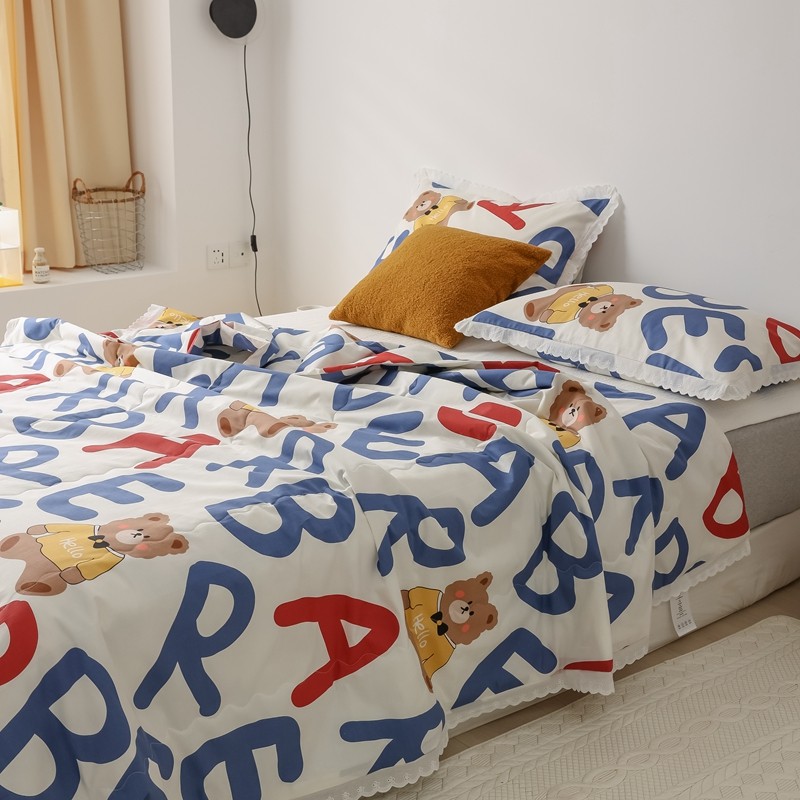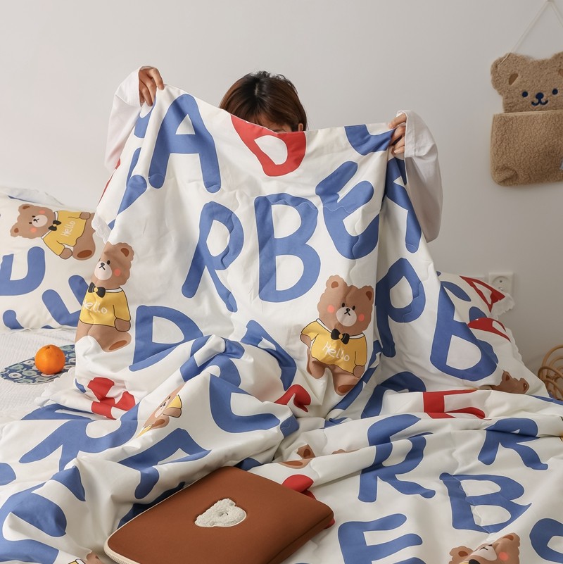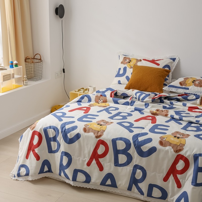 丽笙 2021新款全棉印花花边夏被 字母熊米