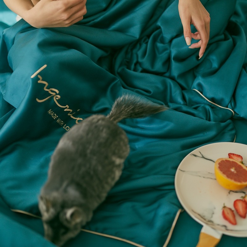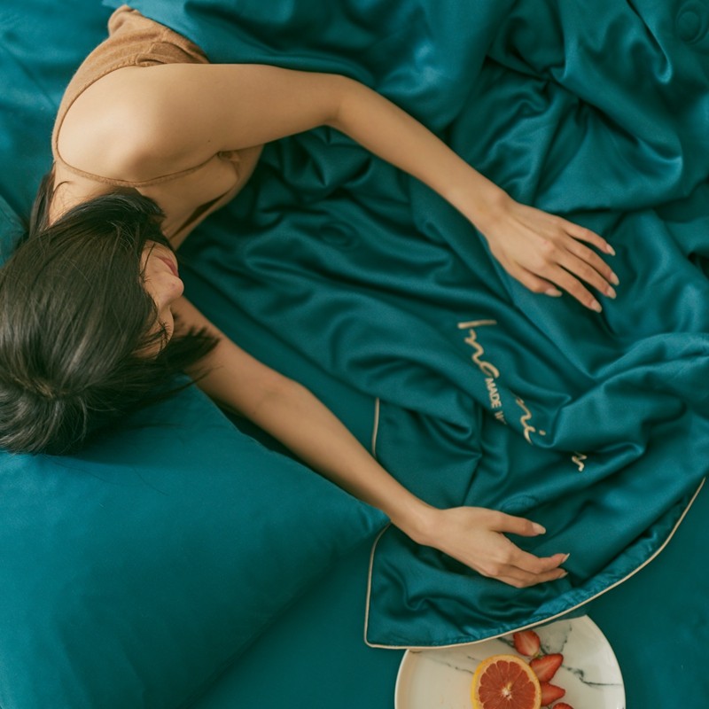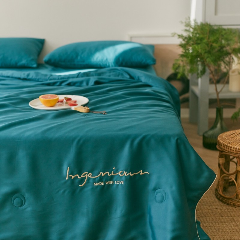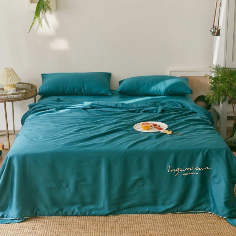 丽笙 2021新款60兰精天丝素色刺绣系列夏被 琥珀绿