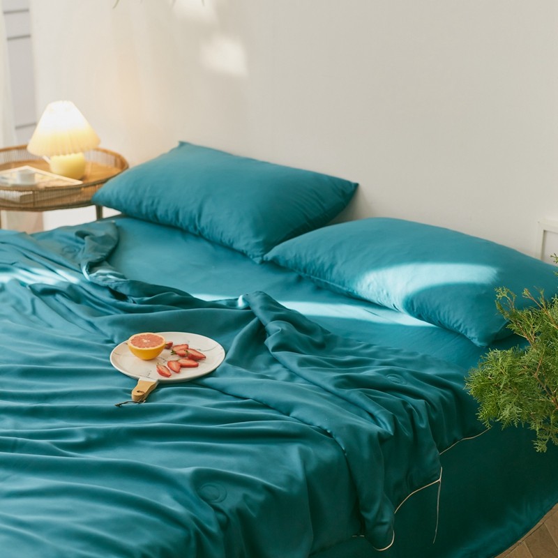 商品名称:丽笙 2021新款60兰精天丝素色刺绣系列夏被 琥珀绿