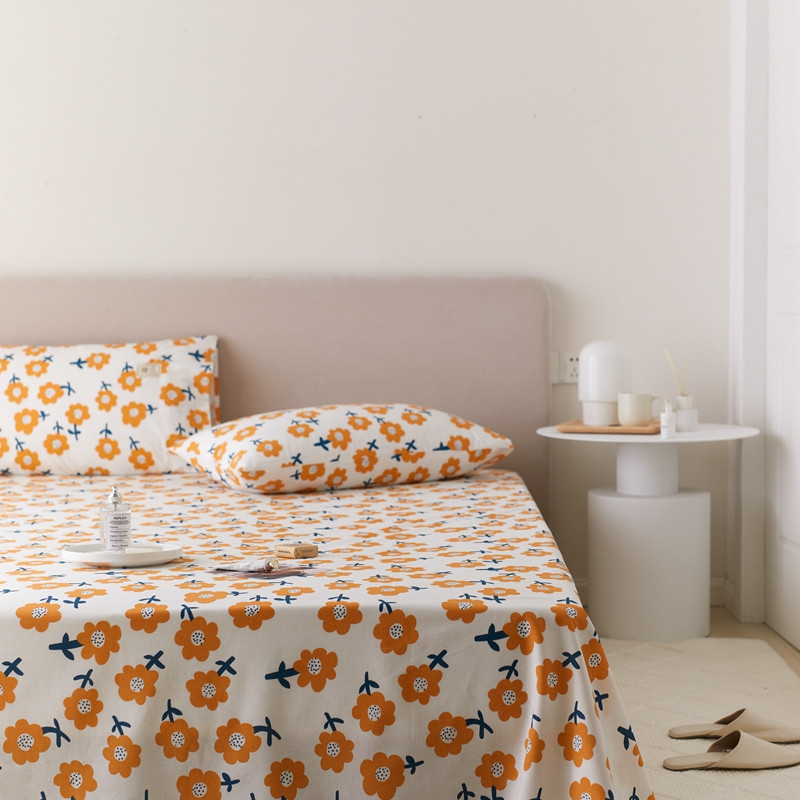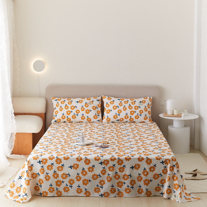 8小时2021新款无印风印花槿色水洗棉单床单 暖阳