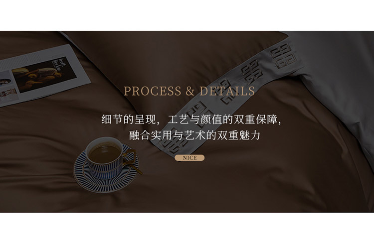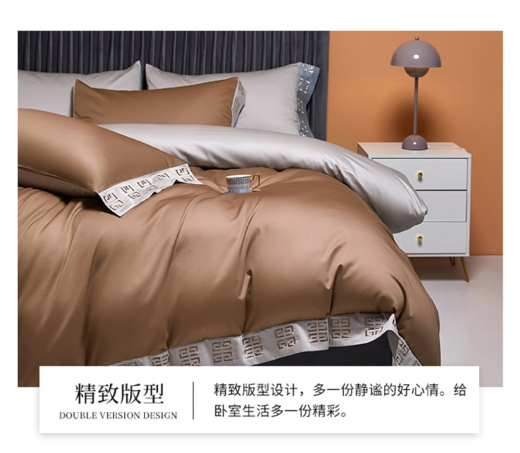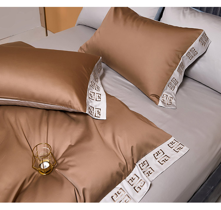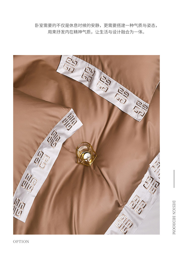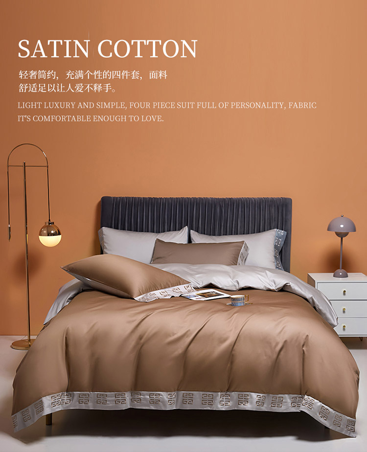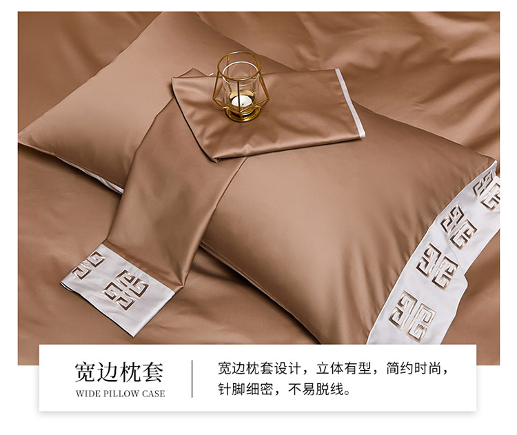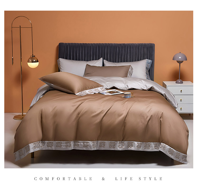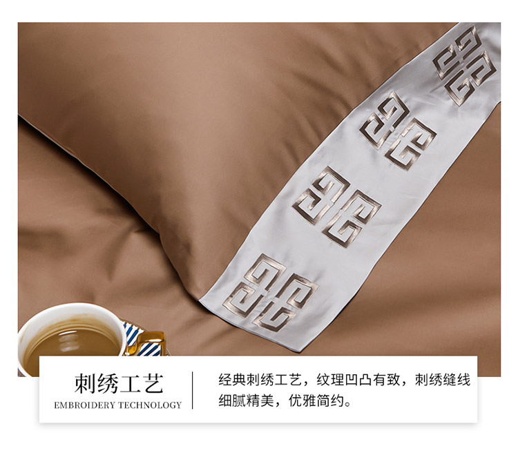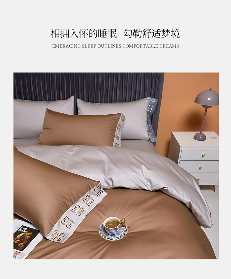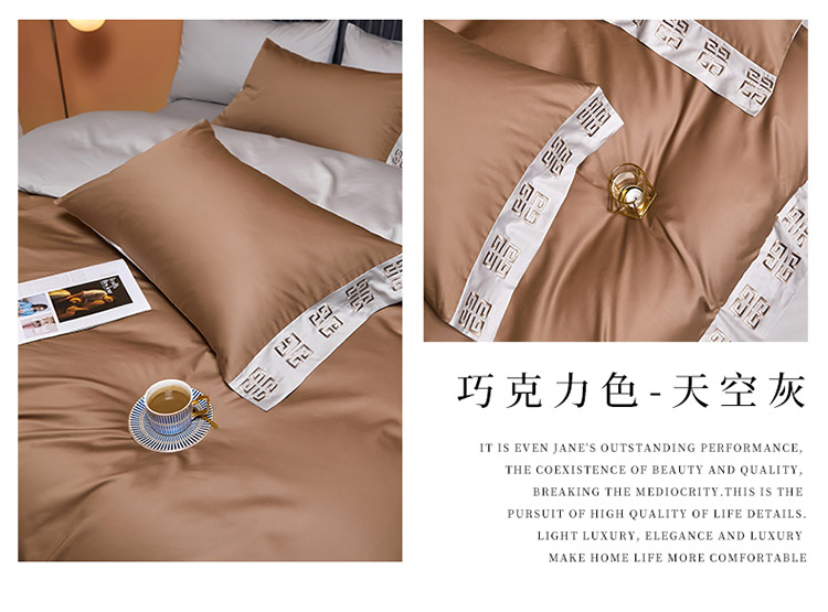 商品名称:爱缦 宫系列100支长绒棉奥棉四件套棚拍图巧克力色天空灰