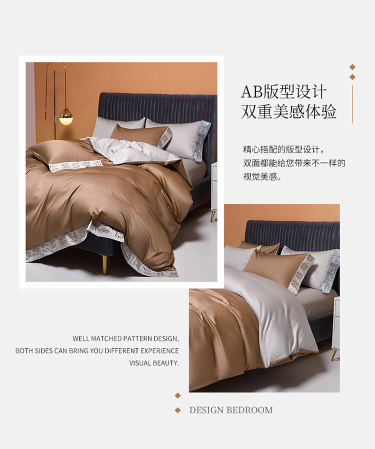 爱缦 宫系列100支长绒棉奥棉四件套棚拍图巧克力色天空灰