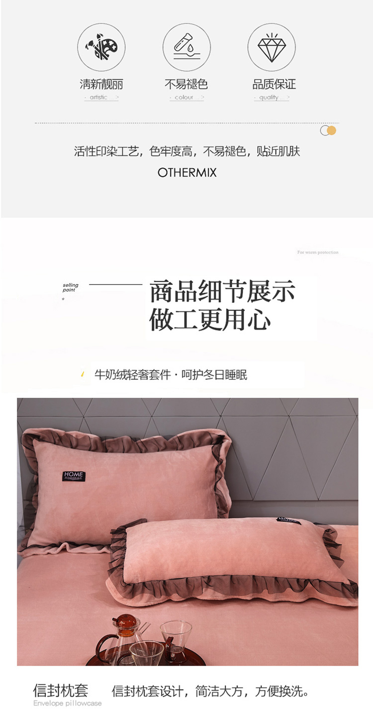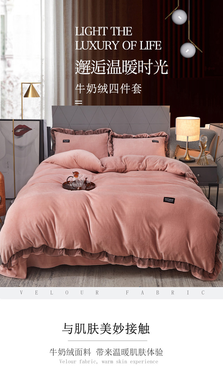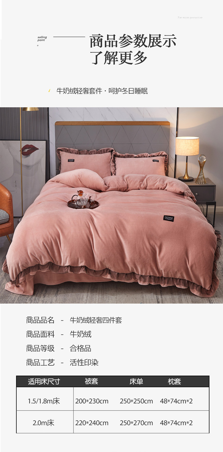 商品名称:2023牛奶绒保暖四件套韩版蕾丝花边四件套 豆沙