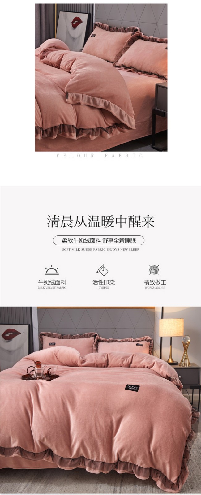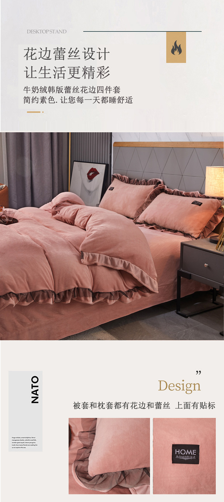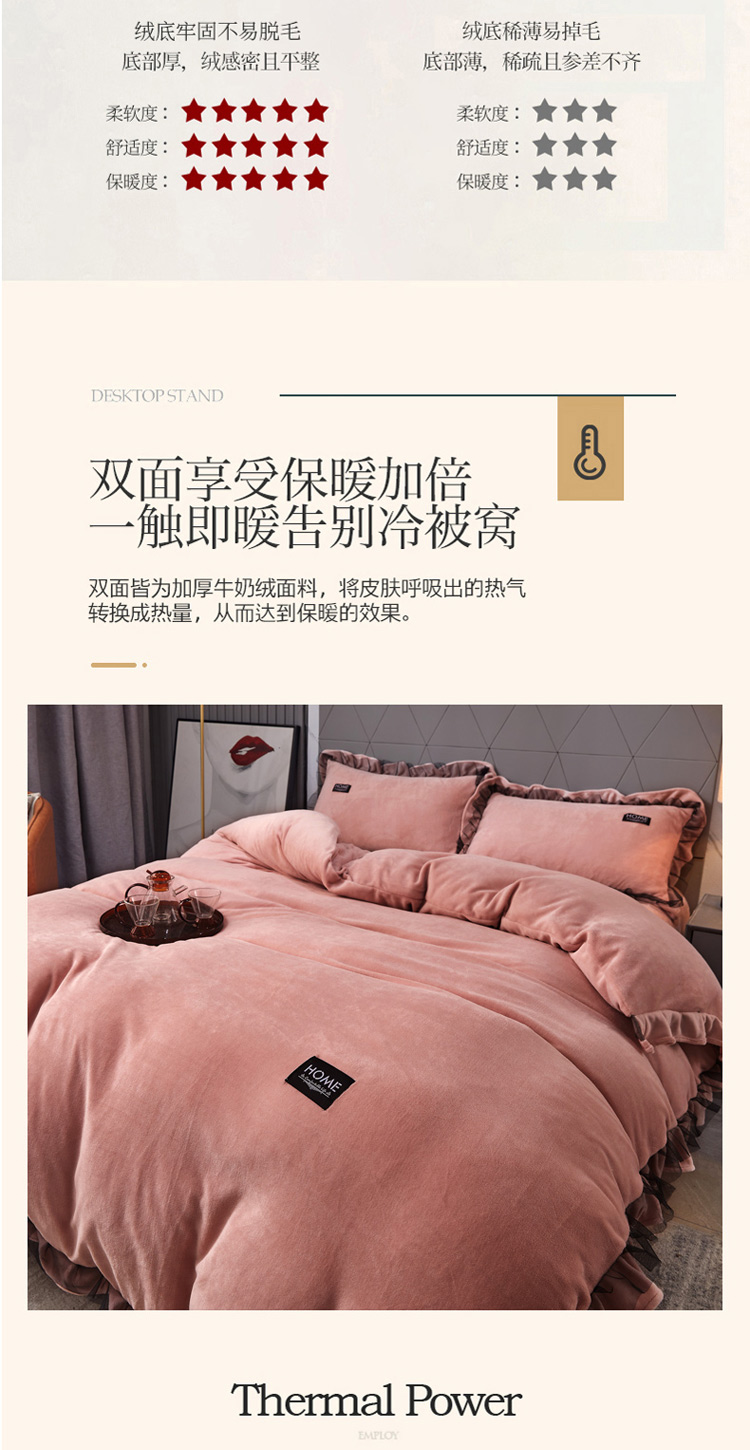 商品名称:2023牛奶绒保暖四件套韩版蕾丝花边四件套 豆沙