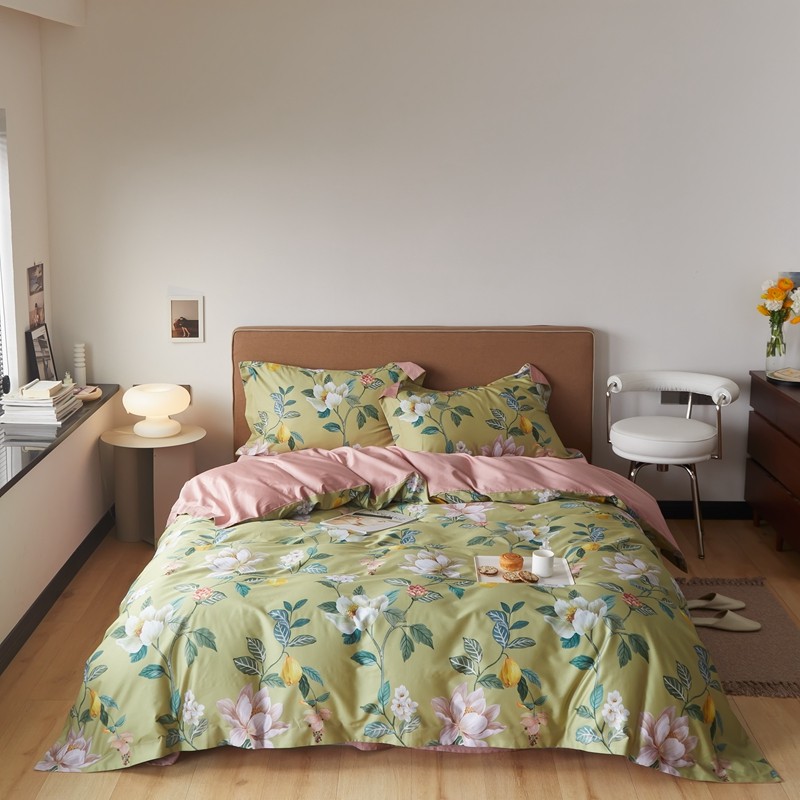 (总)优然居家纺 2025新款50支全棉纯棉印花法式双头木耳边四件套,觅棠,莫妮卡艾绿,莫妮卡罗兰,慕斯粉,薇薇安