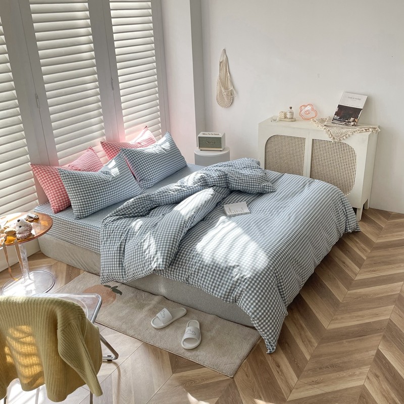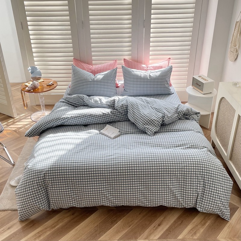 雅珺 2022新款网红爆款全棉色织水洗棉四件套AA版 灰蓝