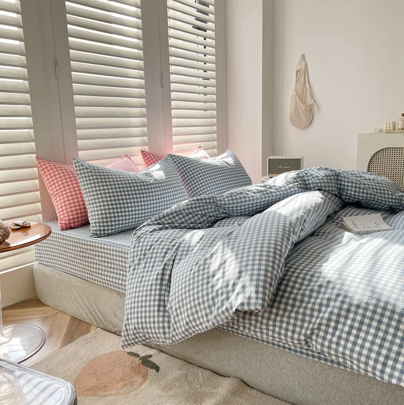 (总)雅珺 2021新款色织全棉水洗棉四件套AB版,草莓格,粉柠格,芒果格,青柠格