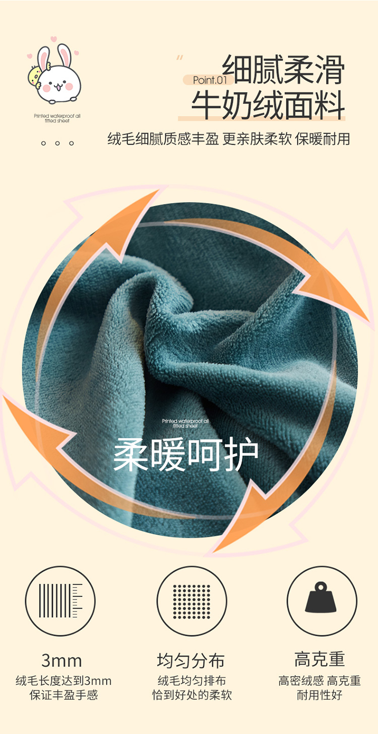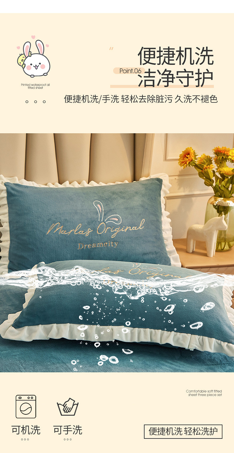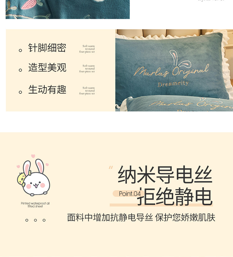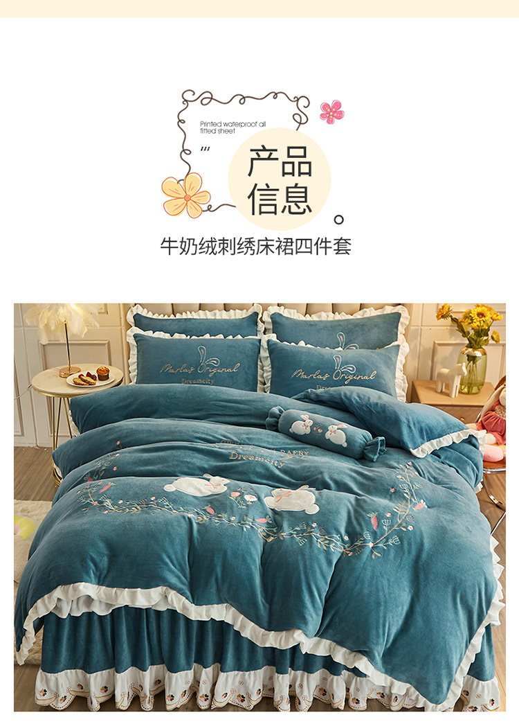 商品名称:宜凡 2021新款牛奶绒绣花兔床裙四件套 萌萌兔-水绿