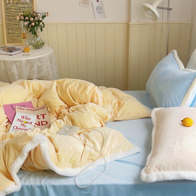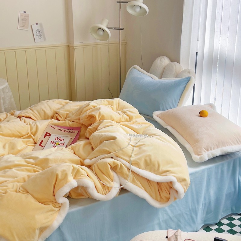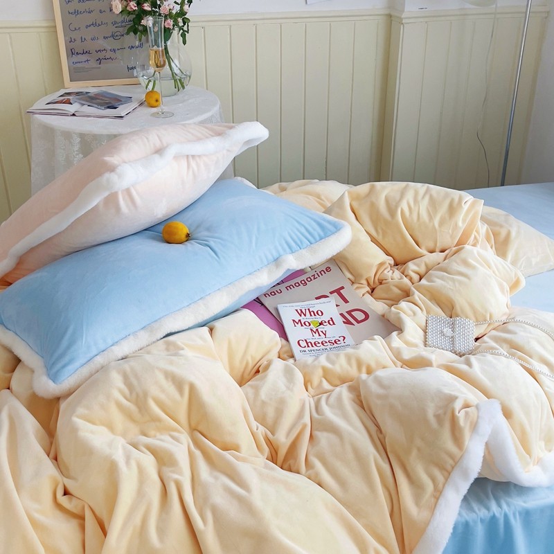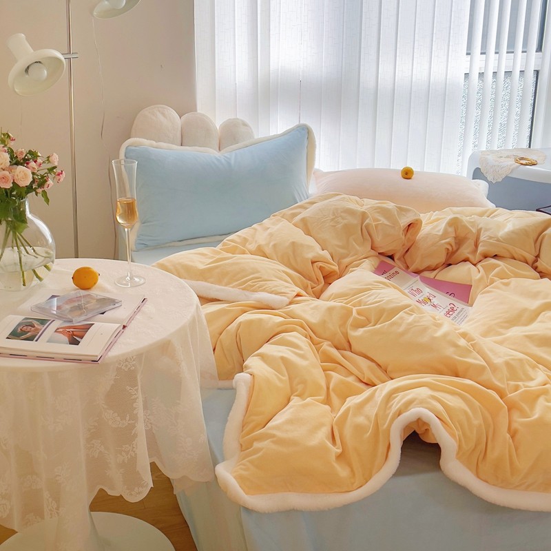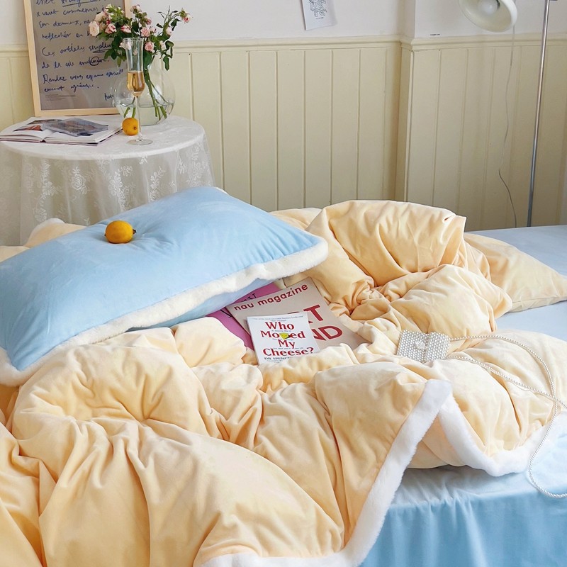 当前位置: 91家纺网 > 商品网购 > 床品套件 > 四件套 > 磨绒四件套 > 圆岛家新品纺撞色混搭系马卡龙ins慢热风冬款暖绒四件套 柠檬黄-枕套橙拼蓝+床单天空蓝