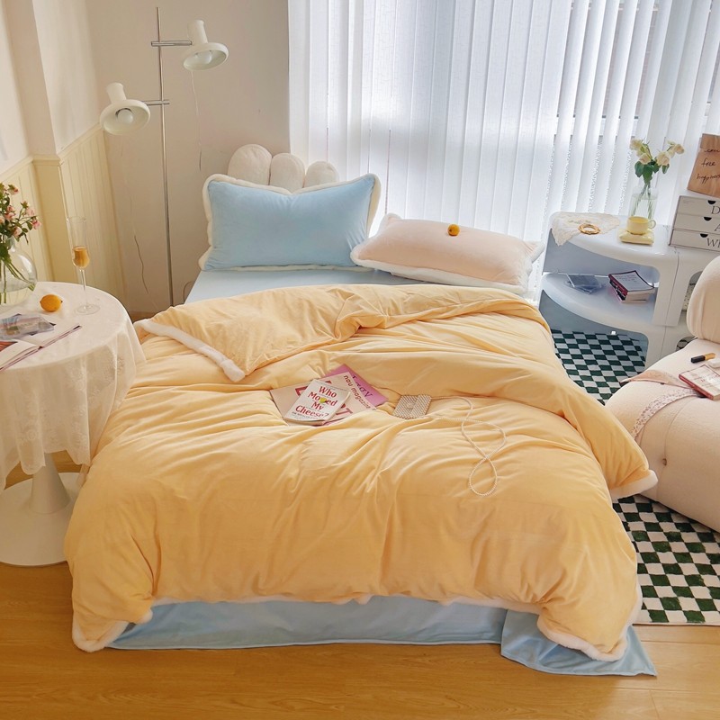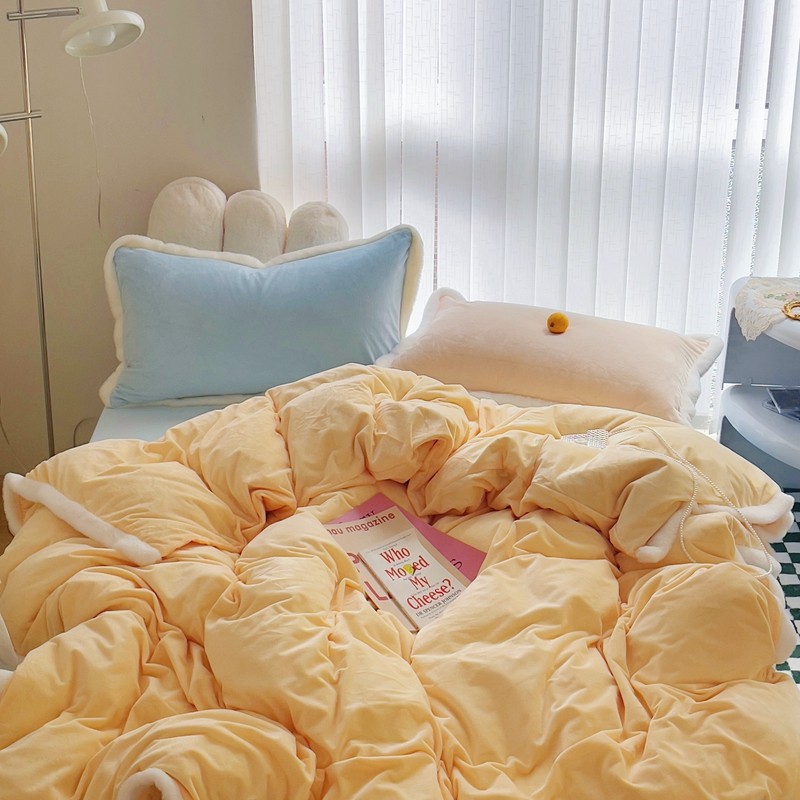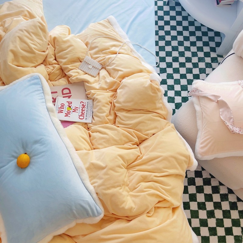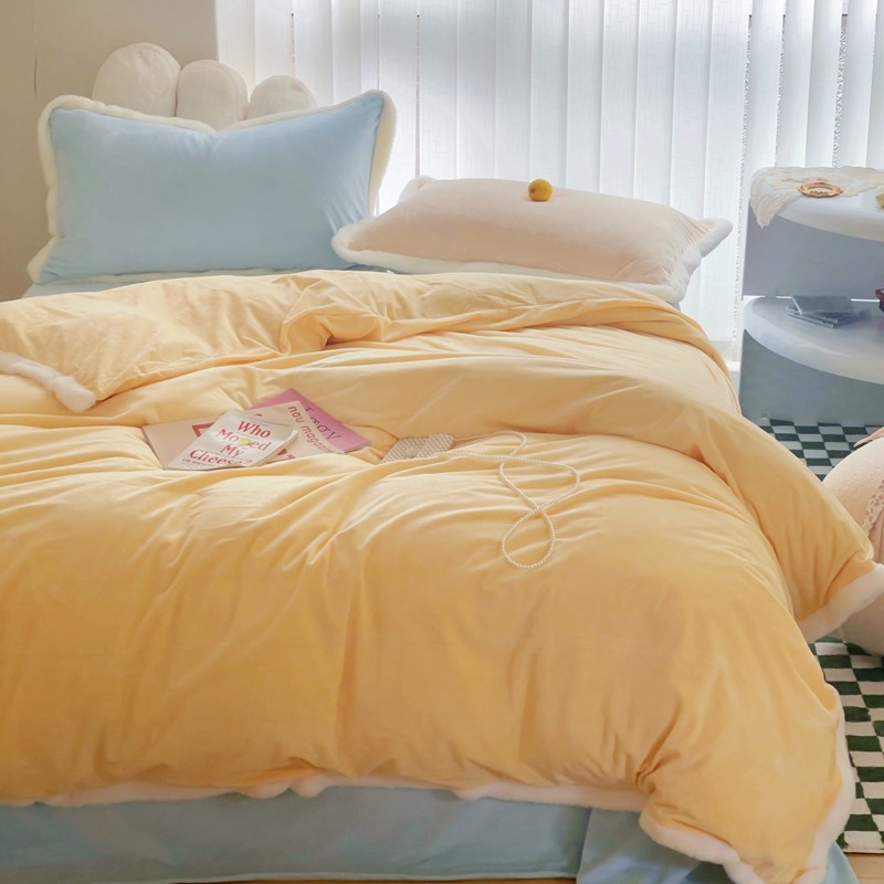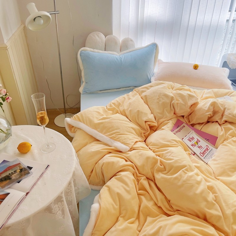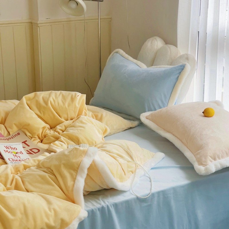 当前位置: 91家纺网 > 商品网购 > 床品套件 > 四件套 > 磨绒四件套 > 圆岛家新品纺撞色混搭系马卡龙ins慢热风冬款暖绒四件套 柠檬黄-枕套橙拼蓝+床单天空蓝