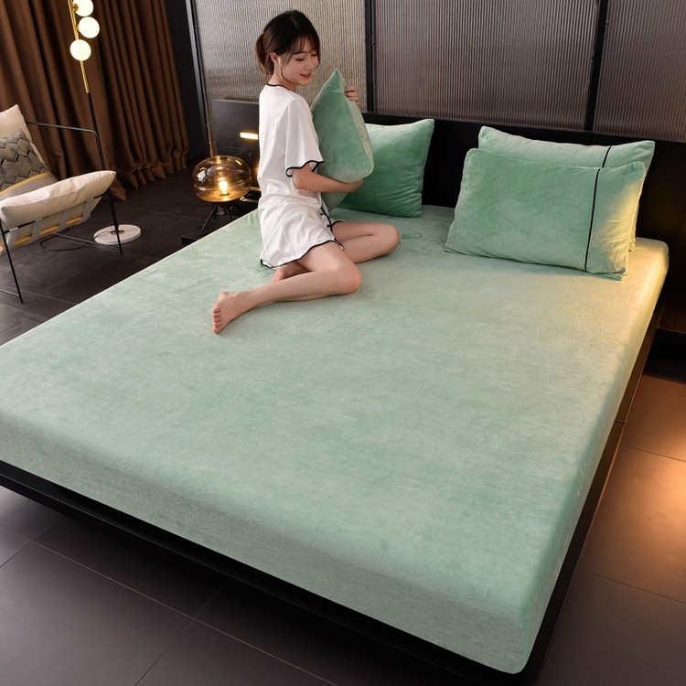 (总)简爱 2025新款纯色牛奶绒单床笠,宾利蓝,豆沙,橄榄绿,灰色,卡其,奶油色,柠檬黄,天蓝,樱花粉,优雅紫
