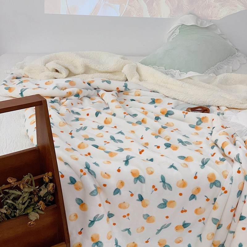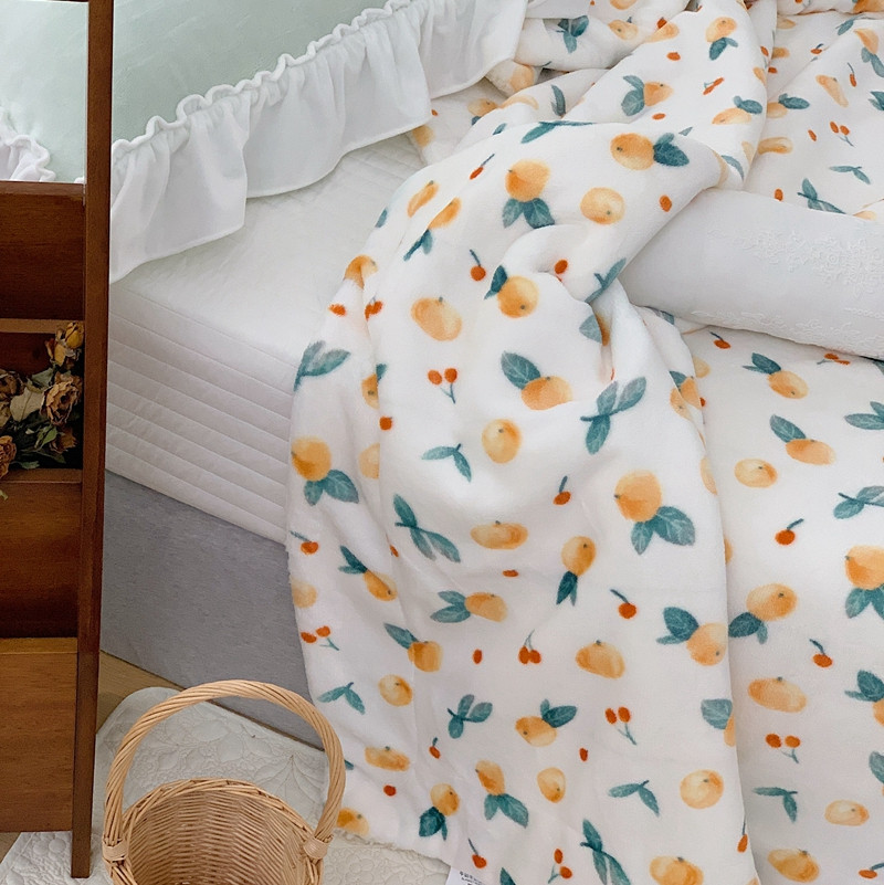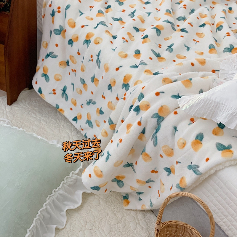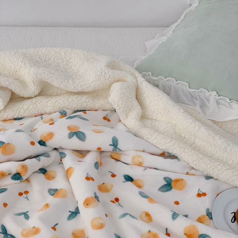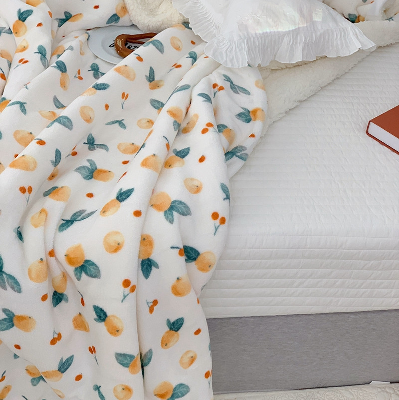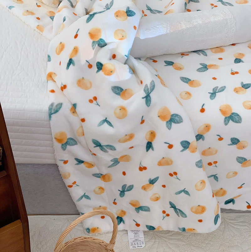 昔可家纺 2021新款牛奶羊羔绒印花毛毯 小金桔