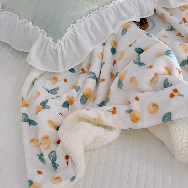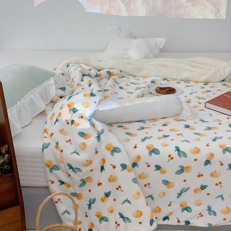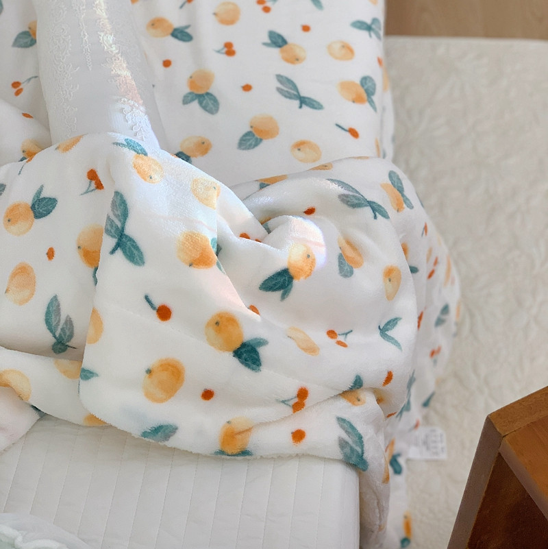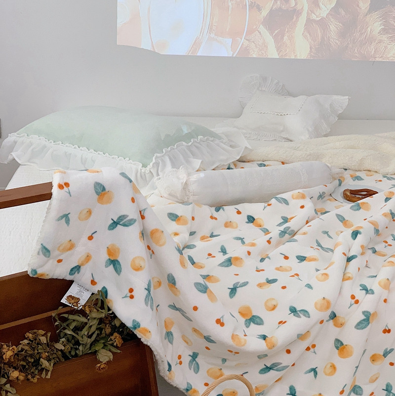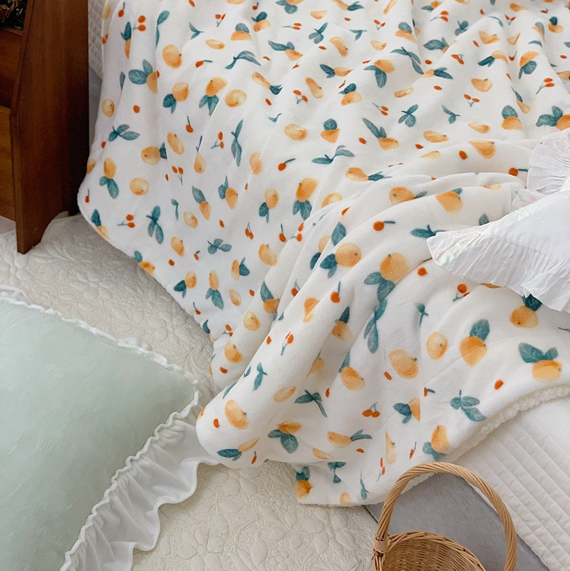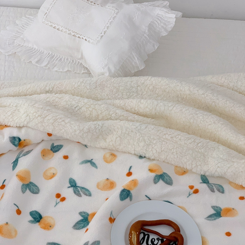 昔可家纺 2021新款牛奶羊羔绒印花毛毯 小金桔