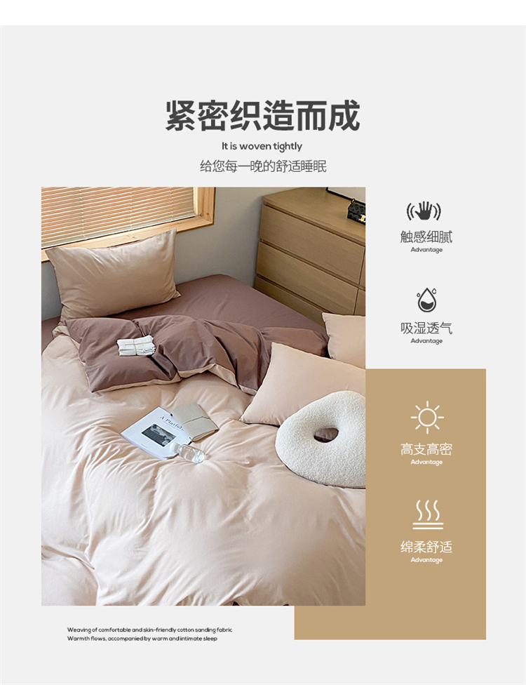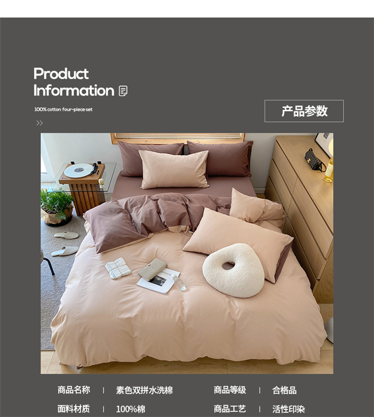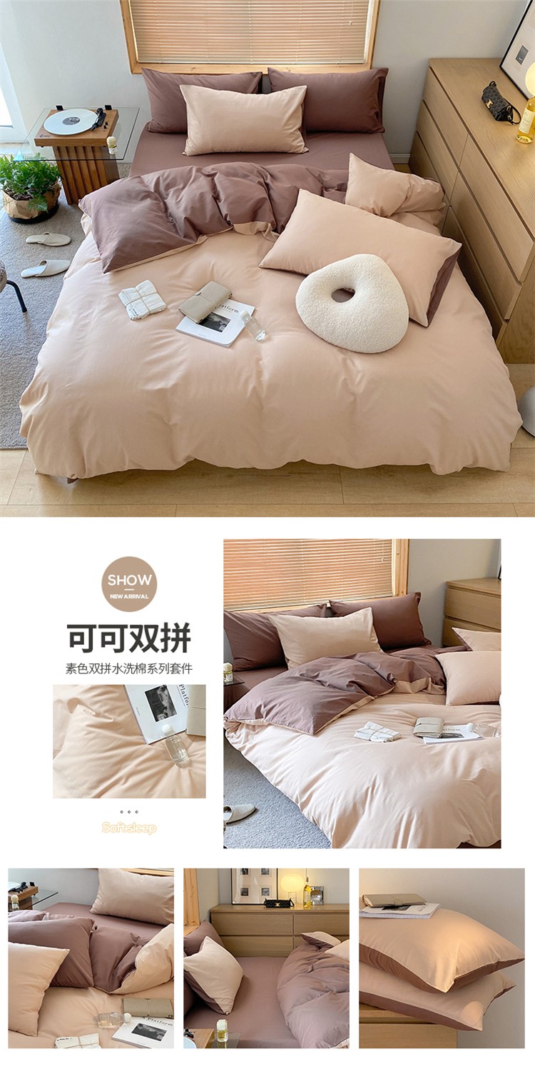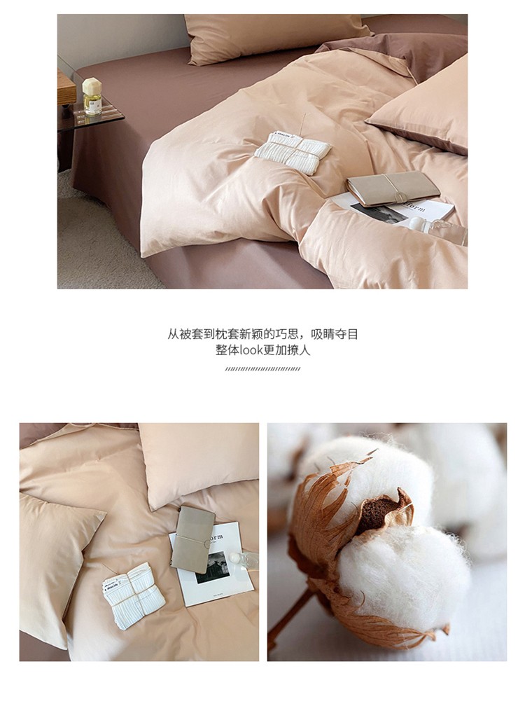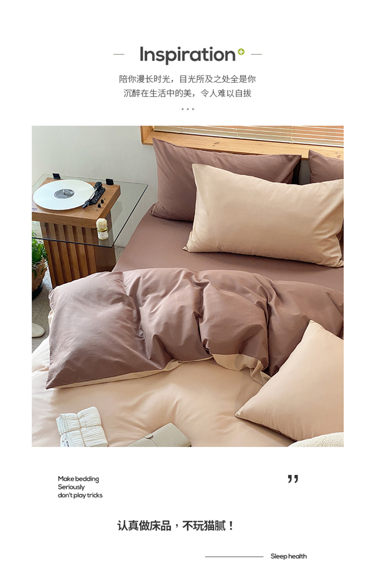当前位置: 91家纺网 > 商品网购 > 床品套件 > 四件套 > 水洗棉四件套 > 窝米 2022春季新品素色双拼水洗棉系列四件套 可可双拼
