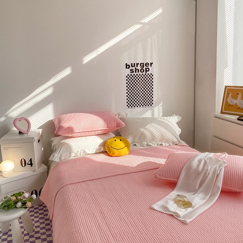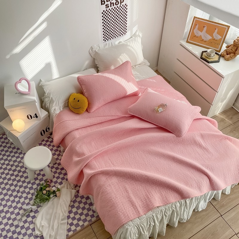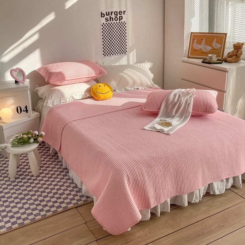 商品名称:茉夕家纺 2022新款纯色床盖 少女粉
