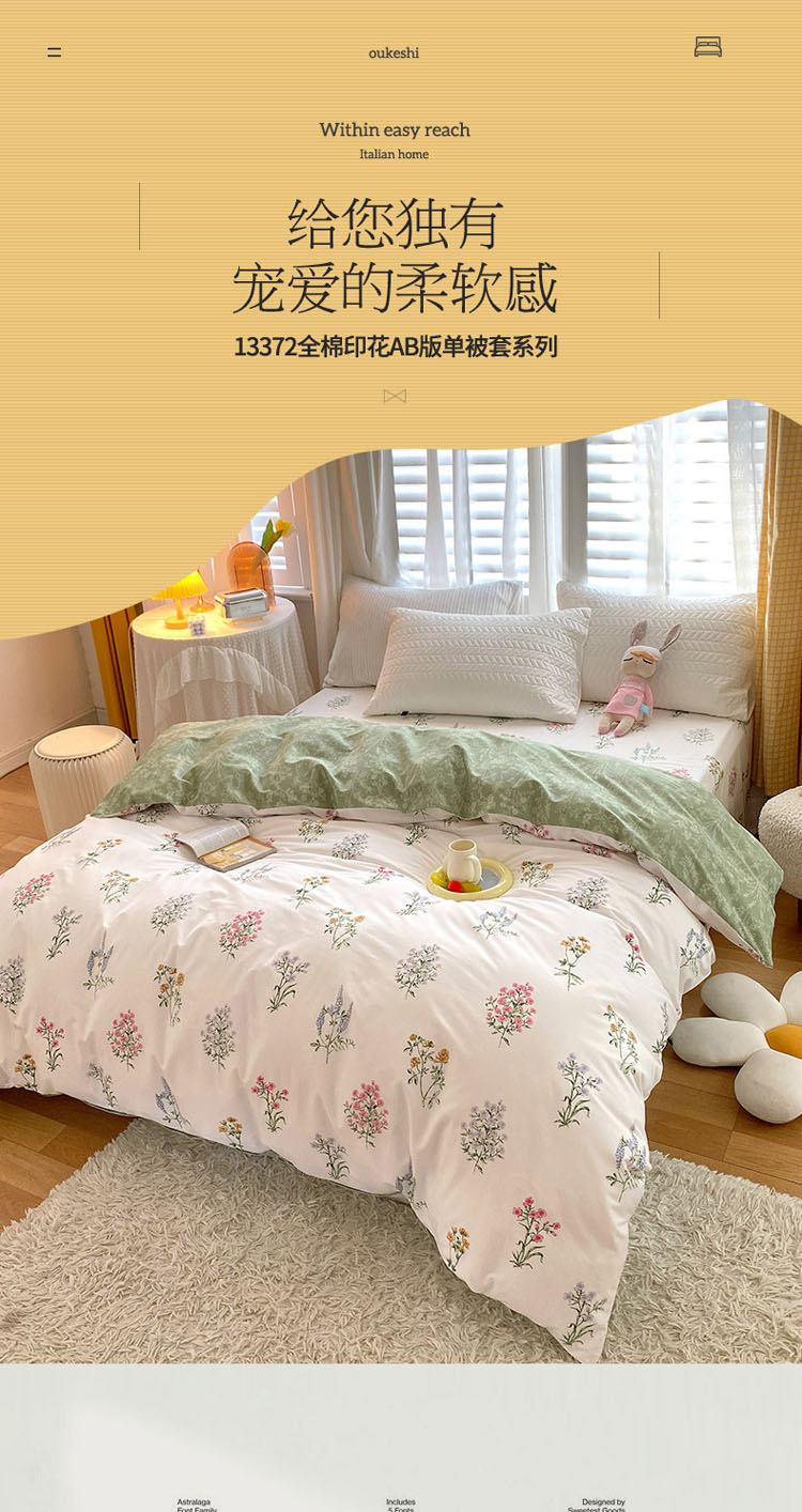 商品名称:宝齐莱 2022新款13372全棉印花单被套 暖阳