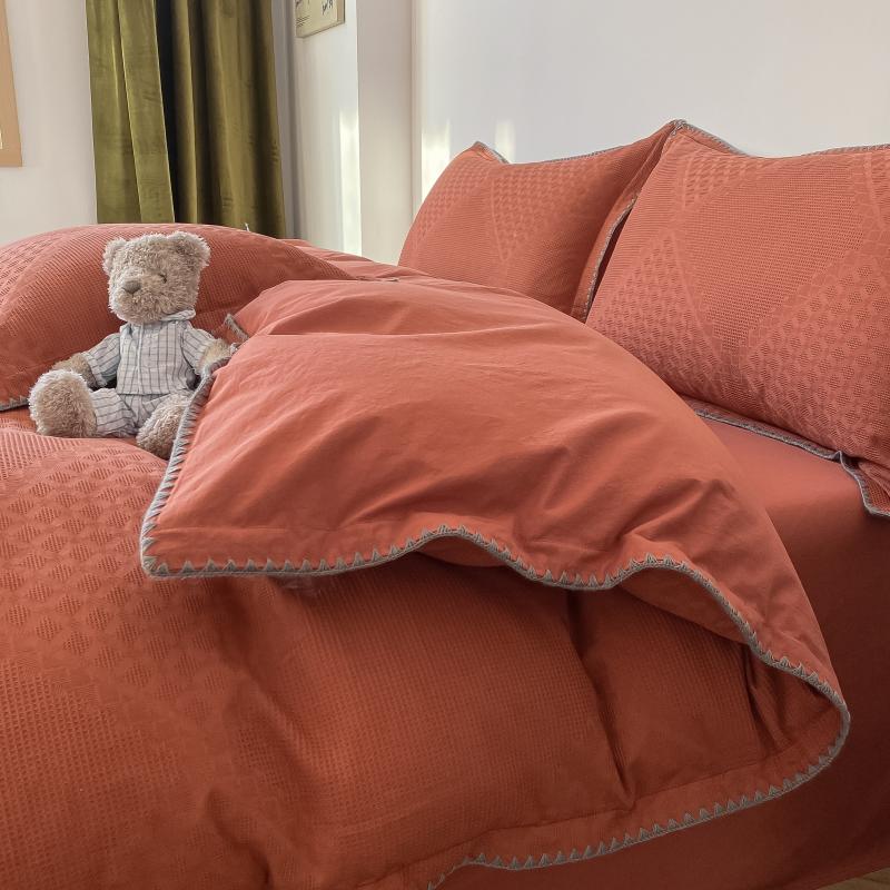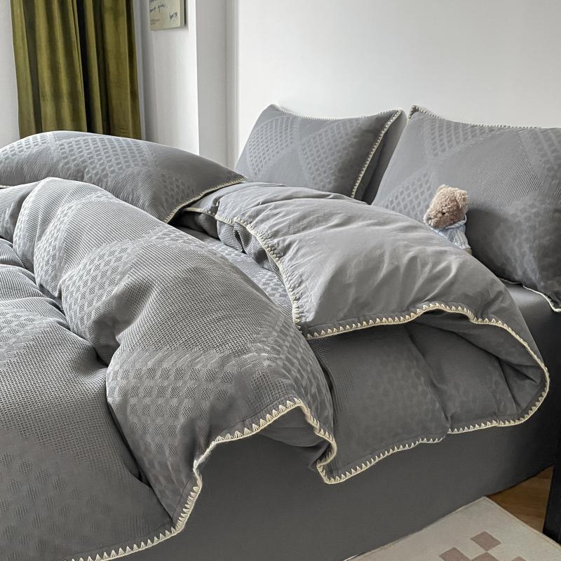 (总)金丝鸟2023新款A类60支全棉水洗棉华夫格系列四件套