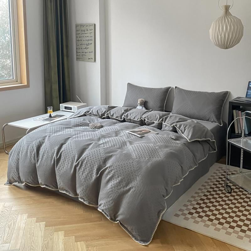 (总)金丝鸟2025新款全棉纯棉双面三层纱提花四件套--凌寒,凌寒