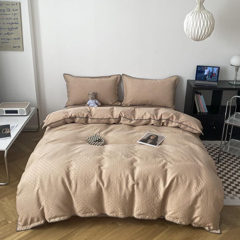 (总)金丝鸟家纺 2025新款专版全棉三层纱提花四件套波纹小熊系列,波纹小熊 咖,波纹小熊粉,波纹小熊桔,波纹小熊兰