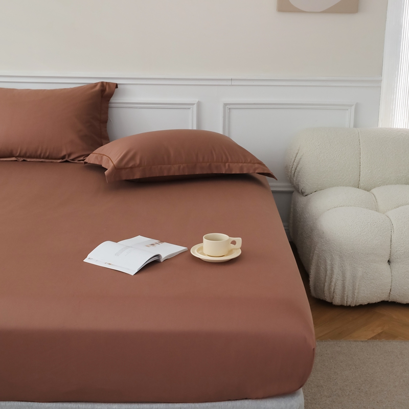 蕊姿 超柔水洗春夏新款50s双股新疆长绒棉单床笠摩卡棕