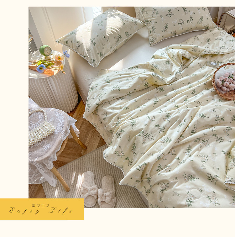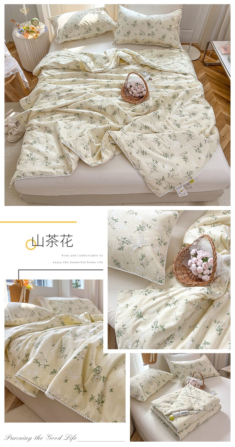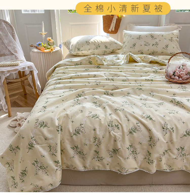 优被业 2023新款全棉韩式小碎花大豆夏被薄被子空调被山茶花