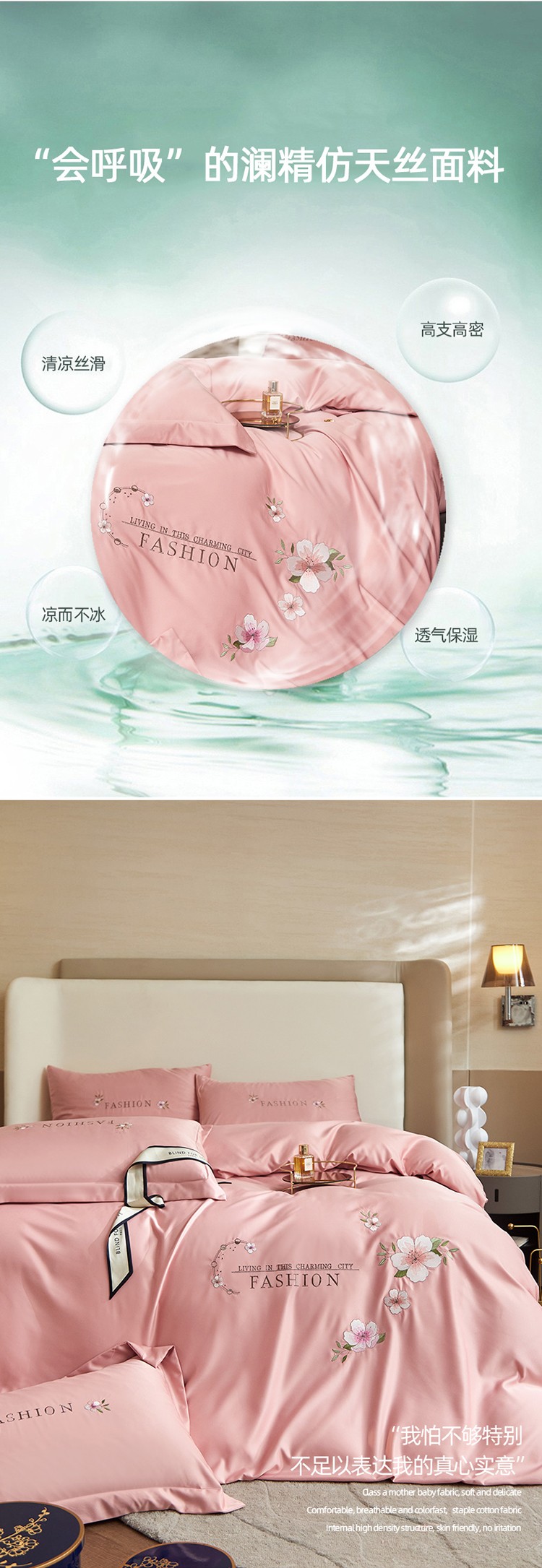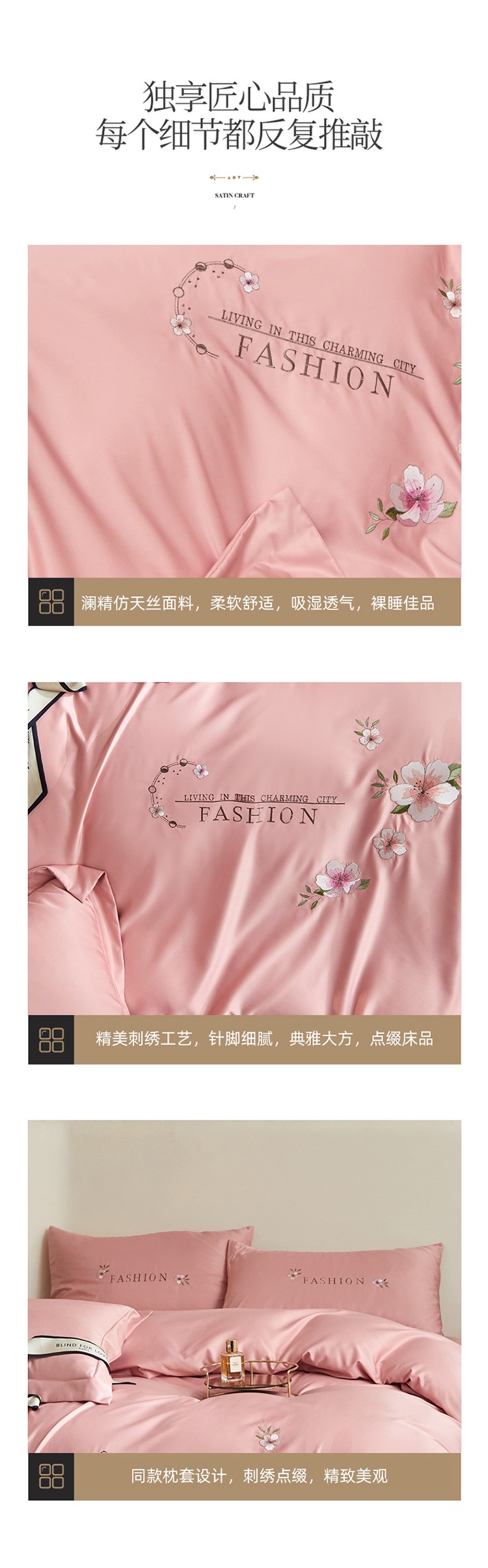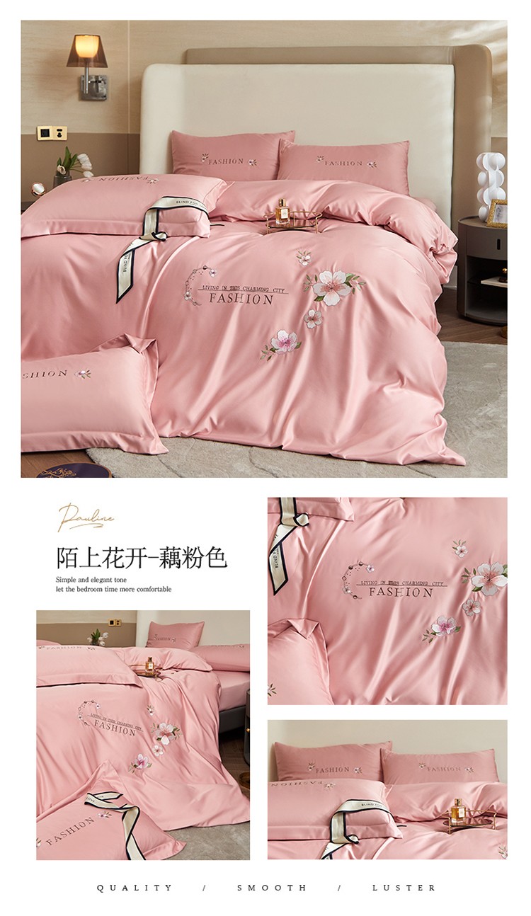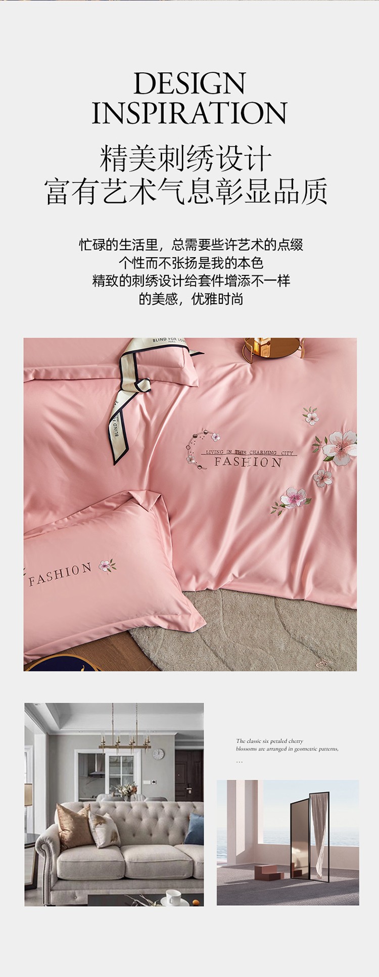 商品名称:凡客 2022新款水洗真丝绣花陌上花开系列 陌上花开-藕粉色