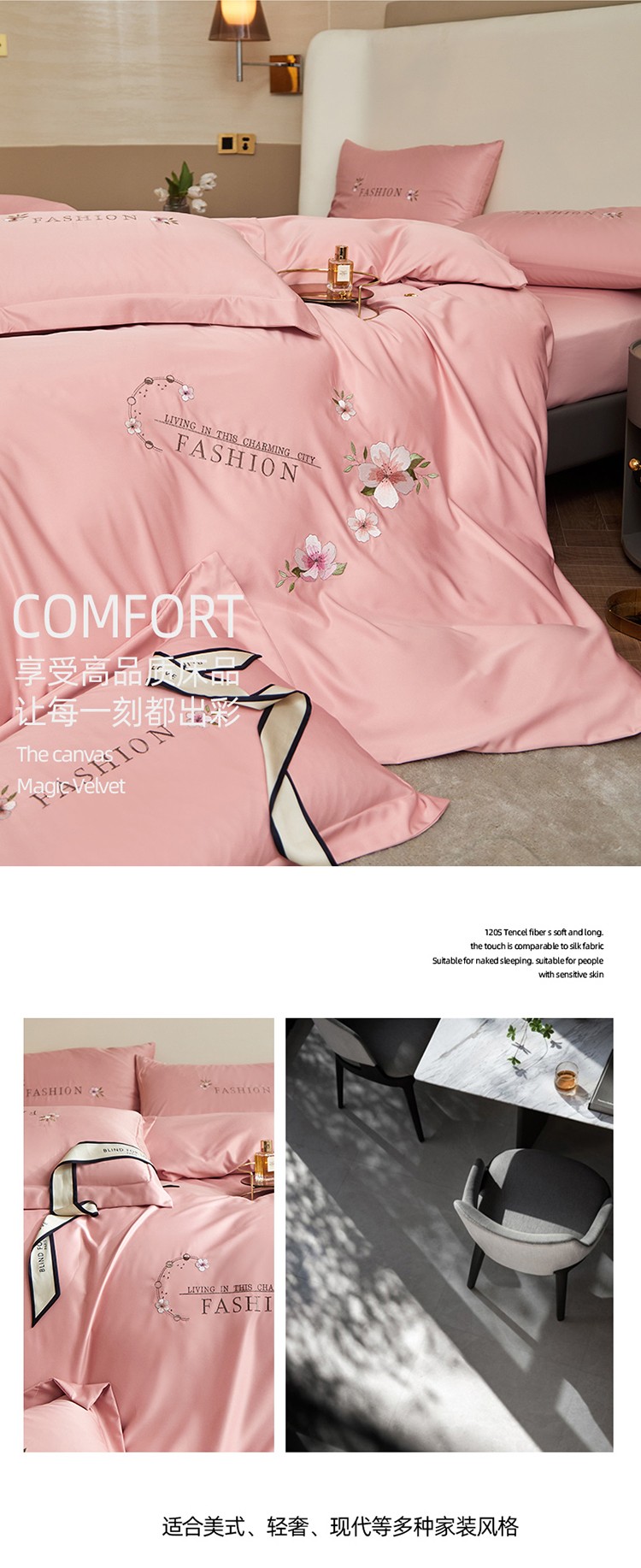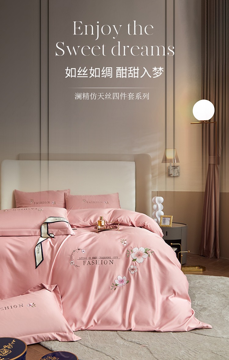(总)凡客家居 2024新款高克重牛奶绒绣花拼角四件套,海洋蓝,奶油咖,深卡其,樱花粉