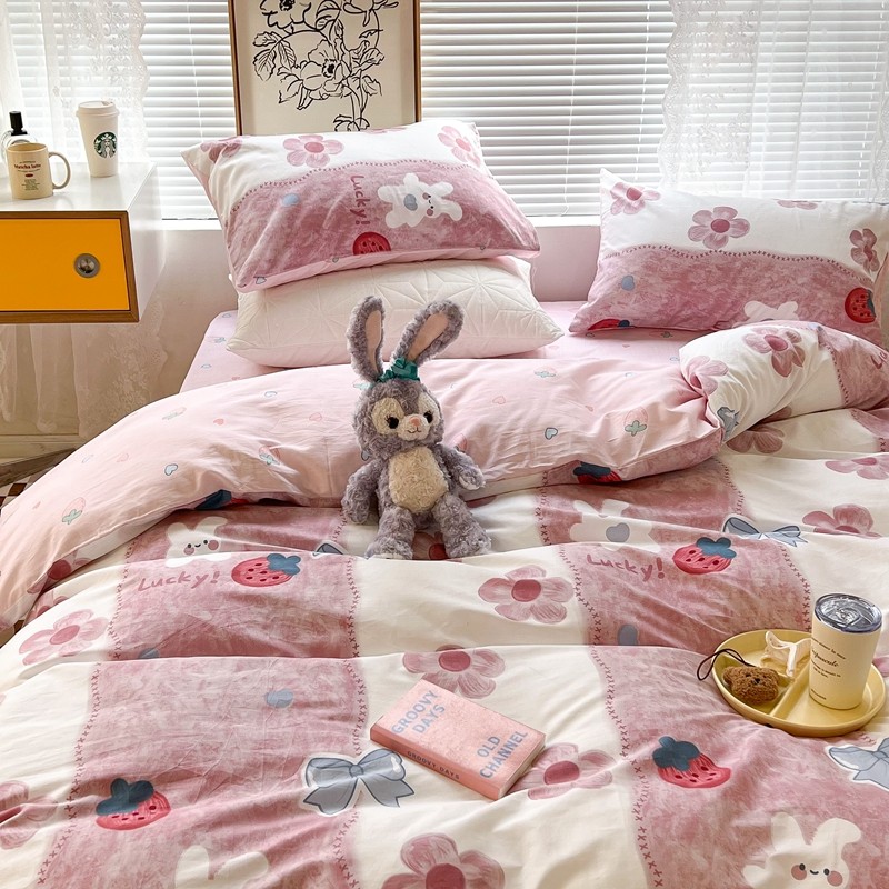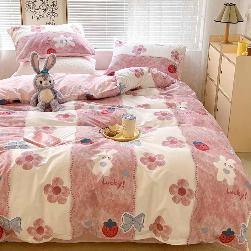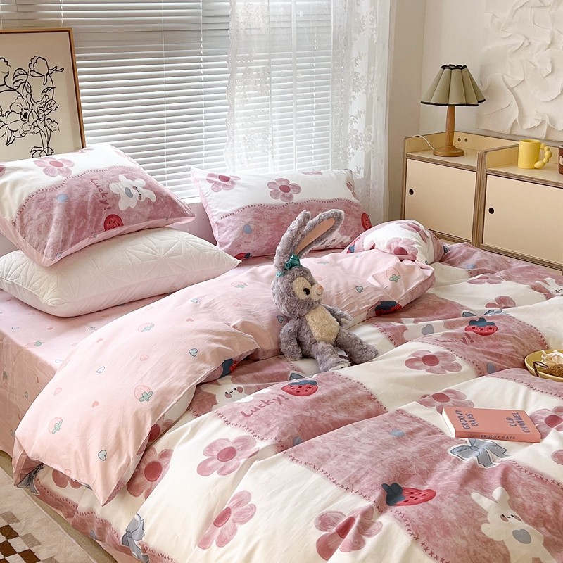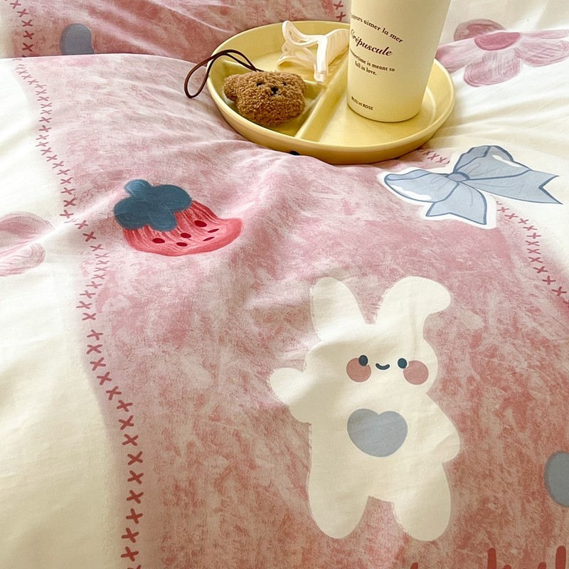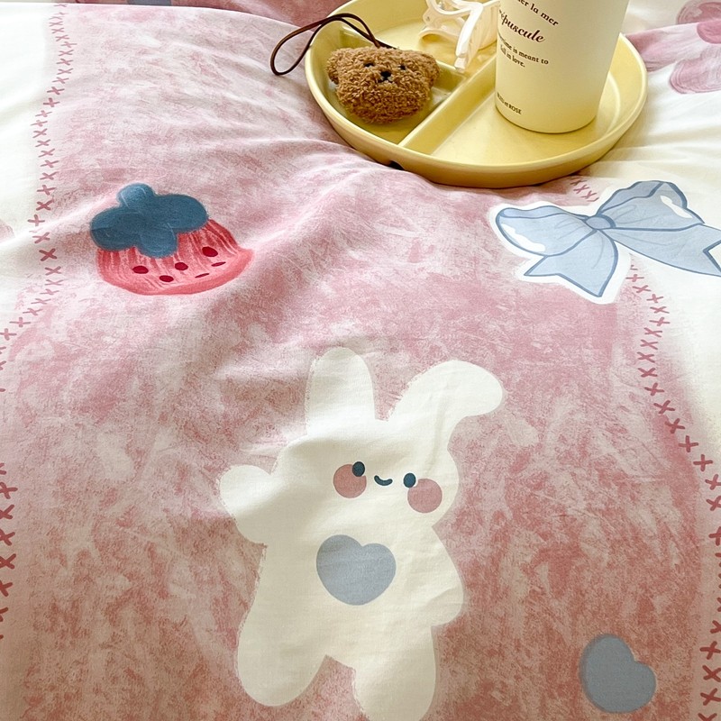昔可2022新款印花全棉四件套跑量款 油画花兔兔