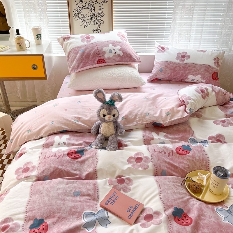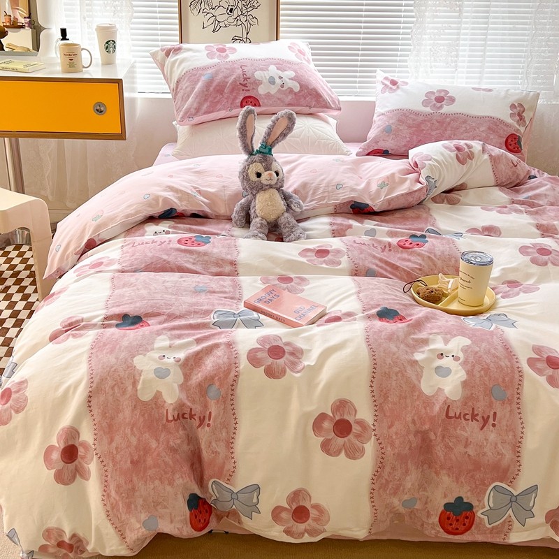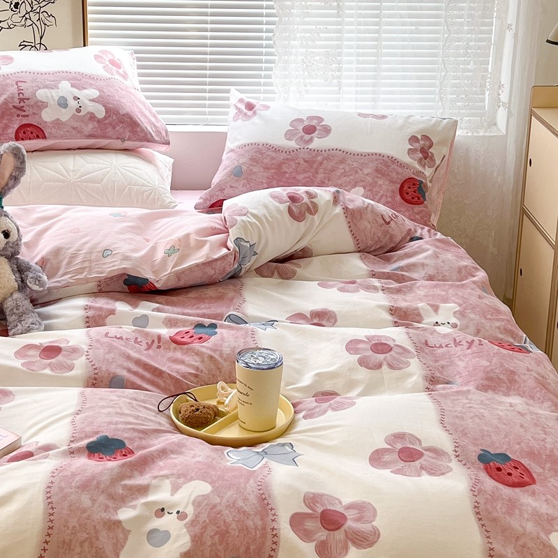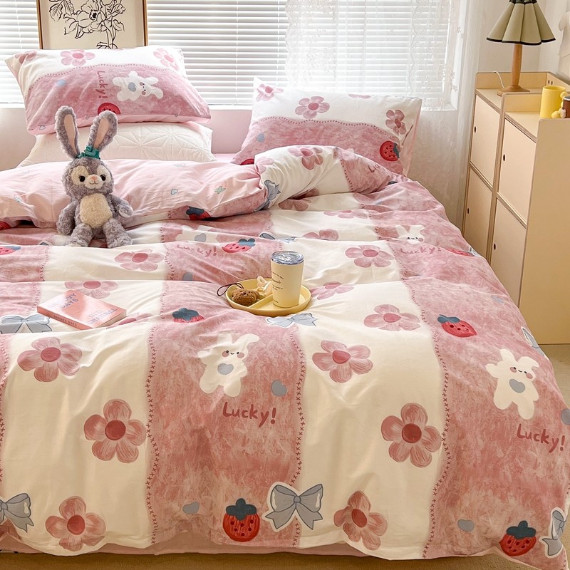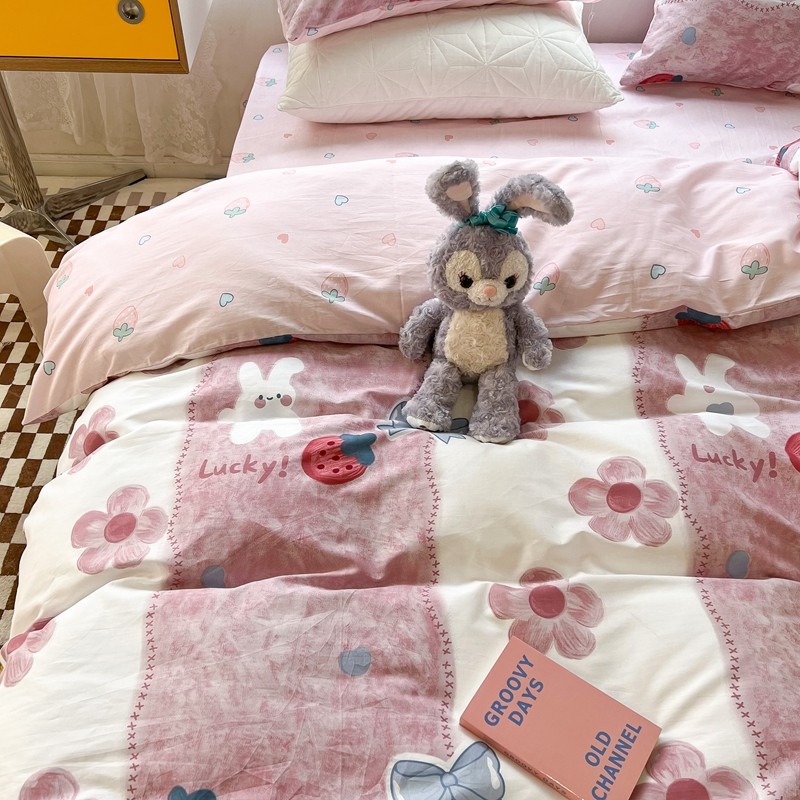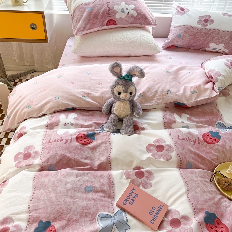 昔可2022新款印花全棉四件套跑量款 油画花兔兔