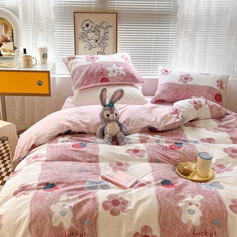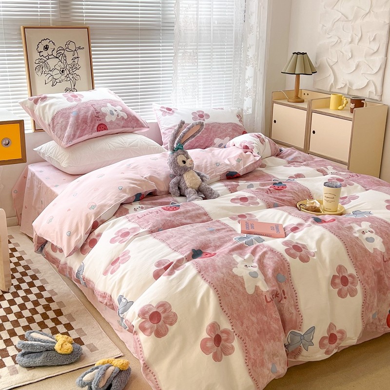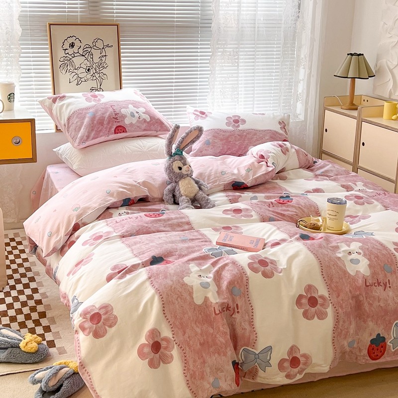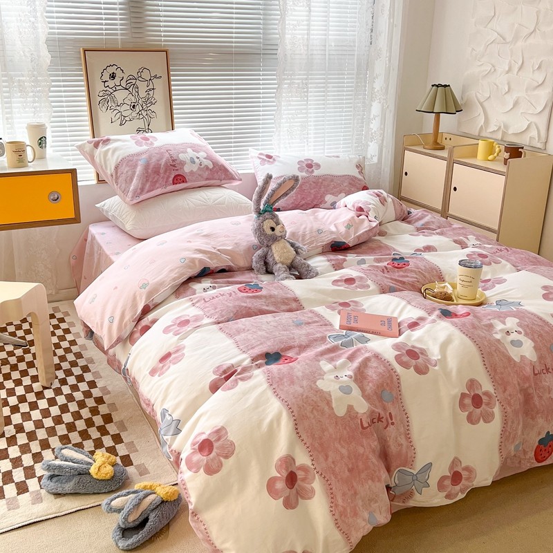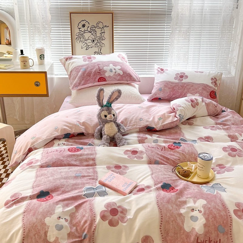(总)昔可家纺 2024新款印花牛奶绒四件套系列-洛丽塔风,萝莉小兔,小熊烘焙屋,小熊玩偶屋
