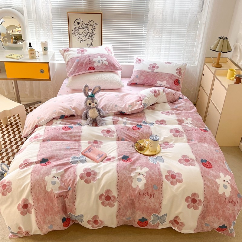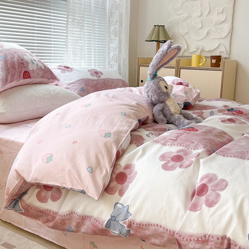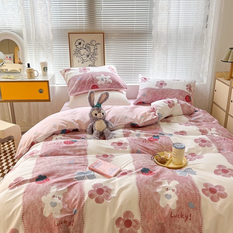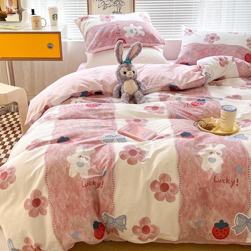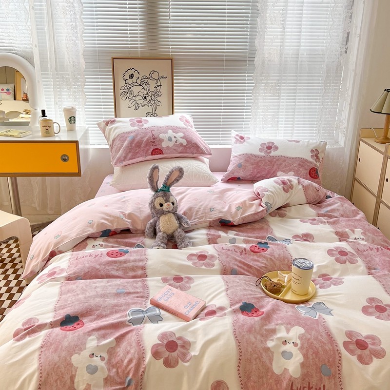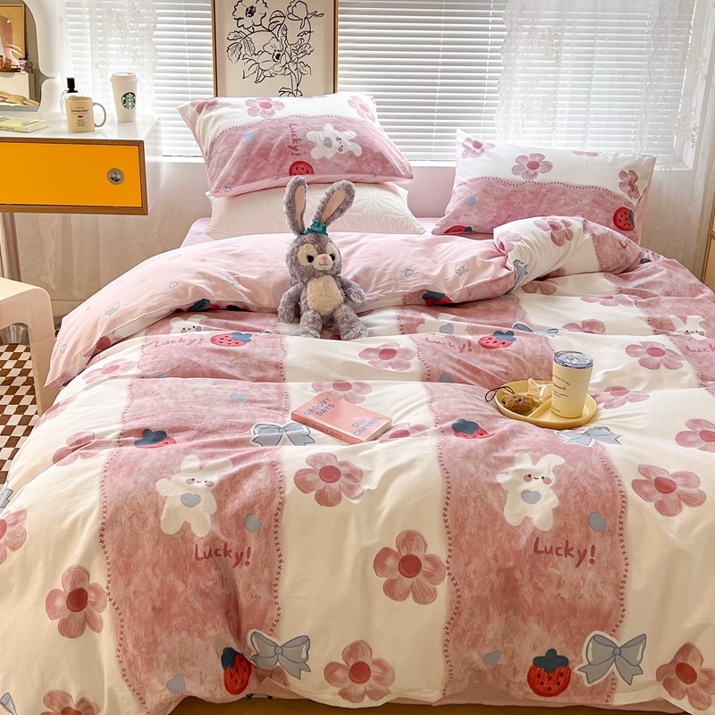 (总)昔可家纺 2024新款印花牛奶绒四件套系列-洛丽塔风,萝莉小兔,小熊烘焙屋,小熊玩偶屋