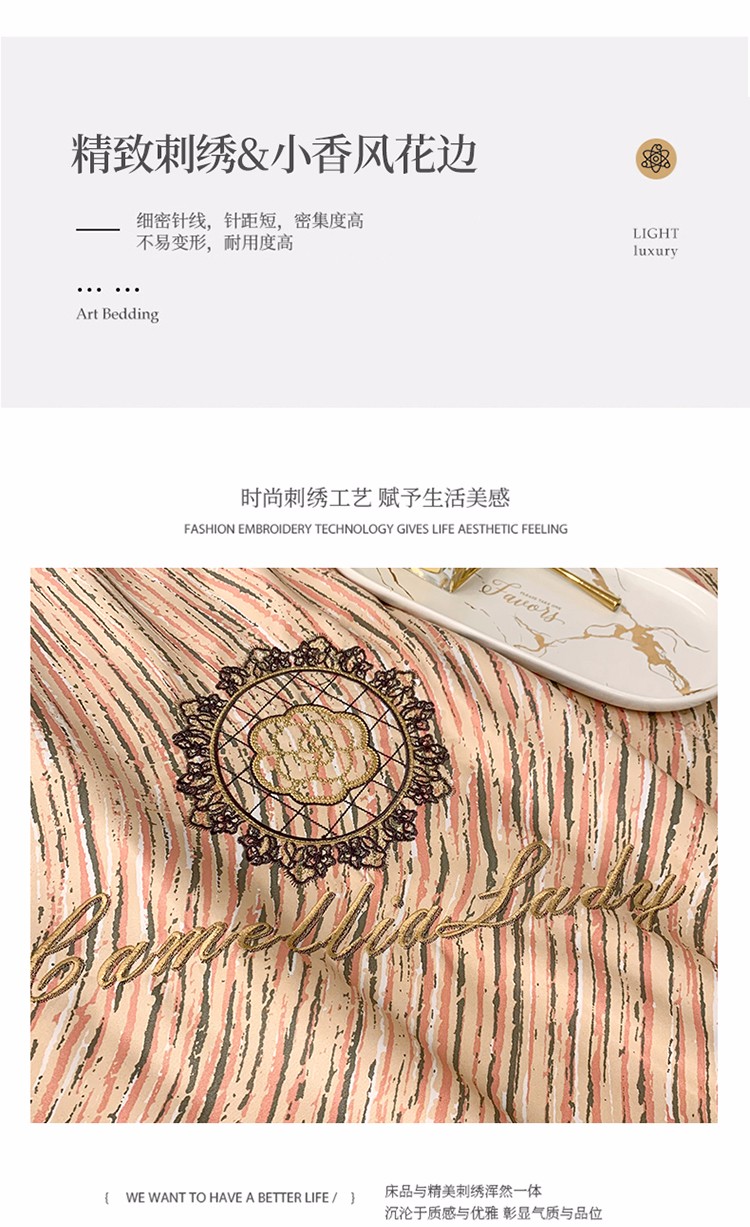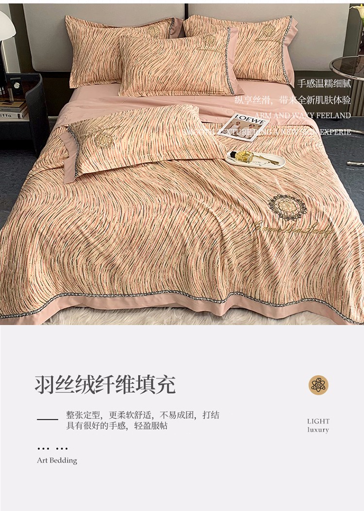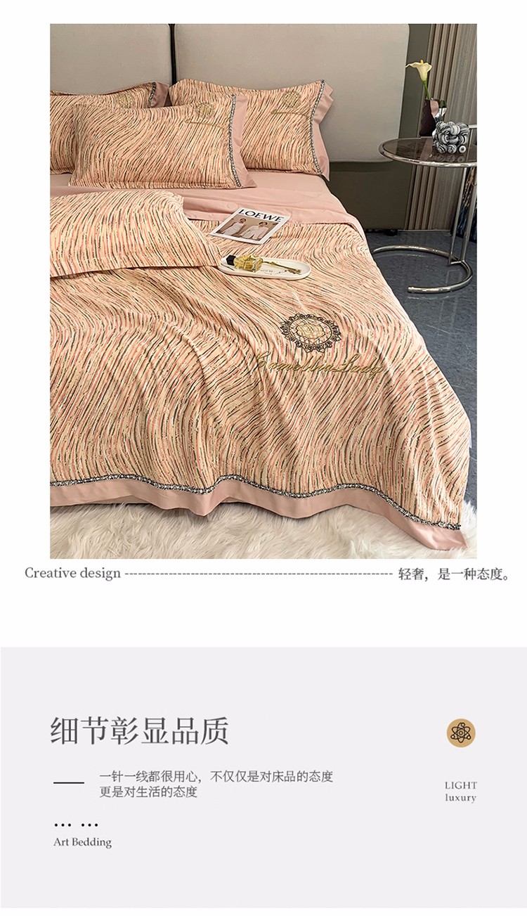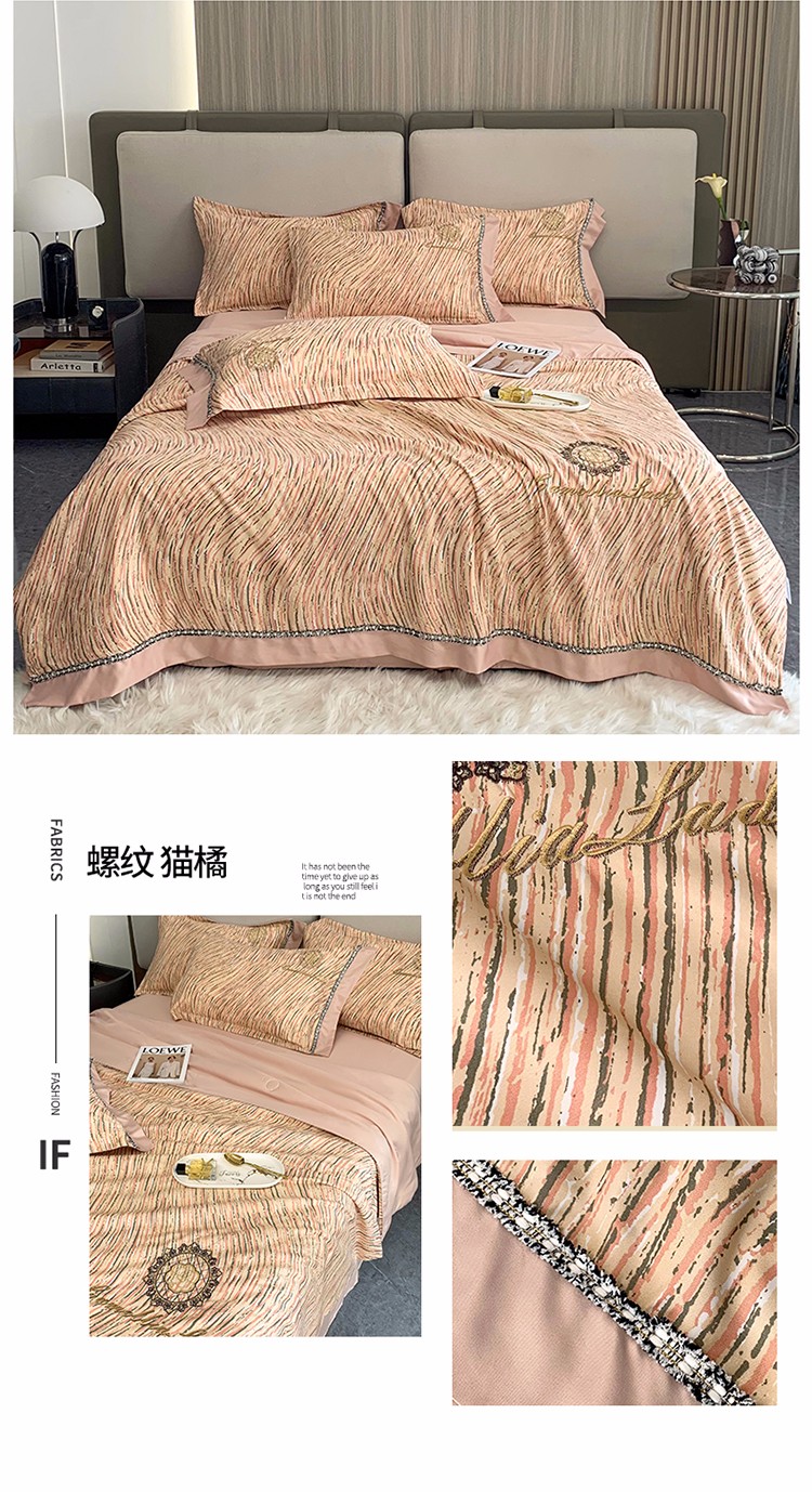 商品名称:澳洲羽 2024新款小香风刺绣夏被四件套 螺纹-猫橘