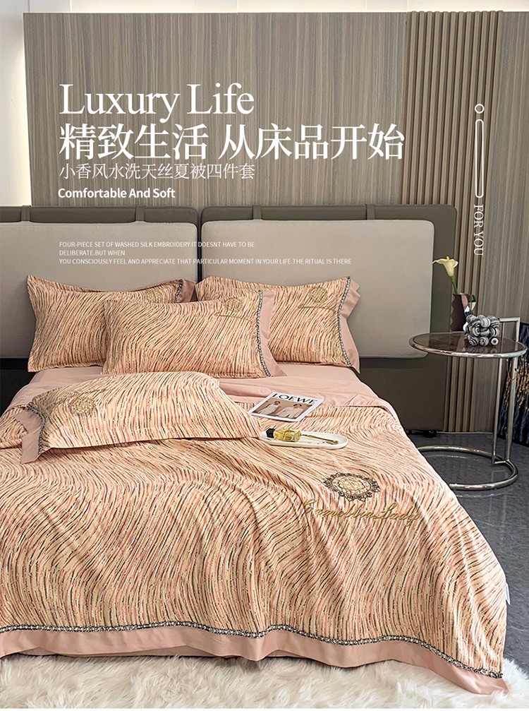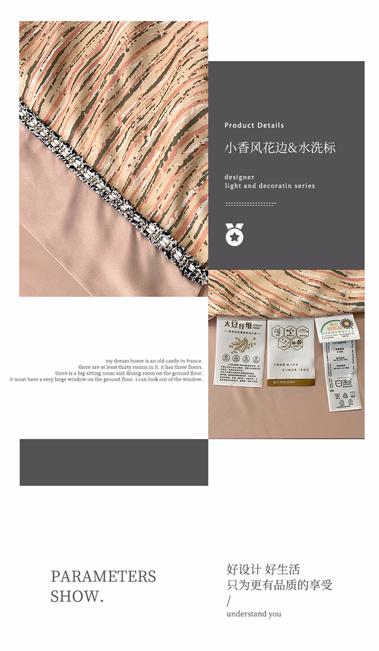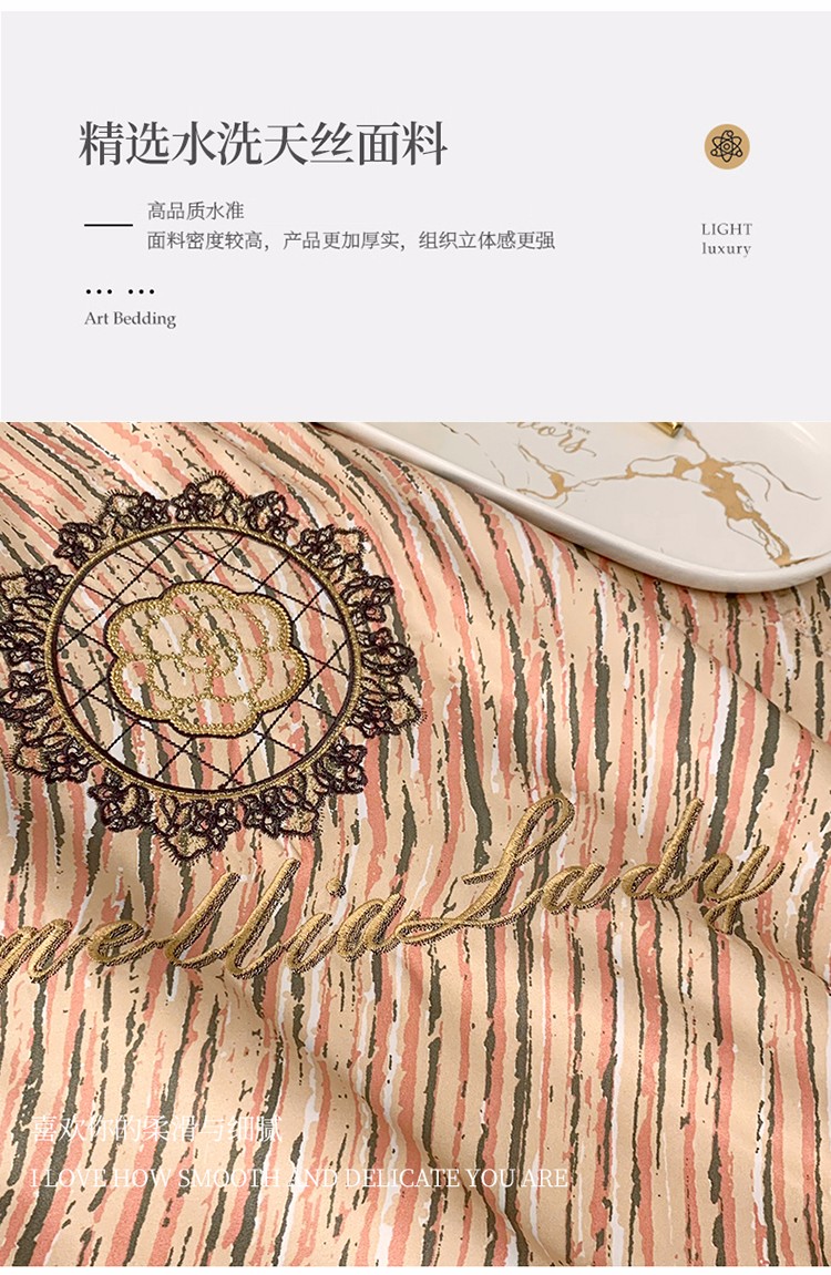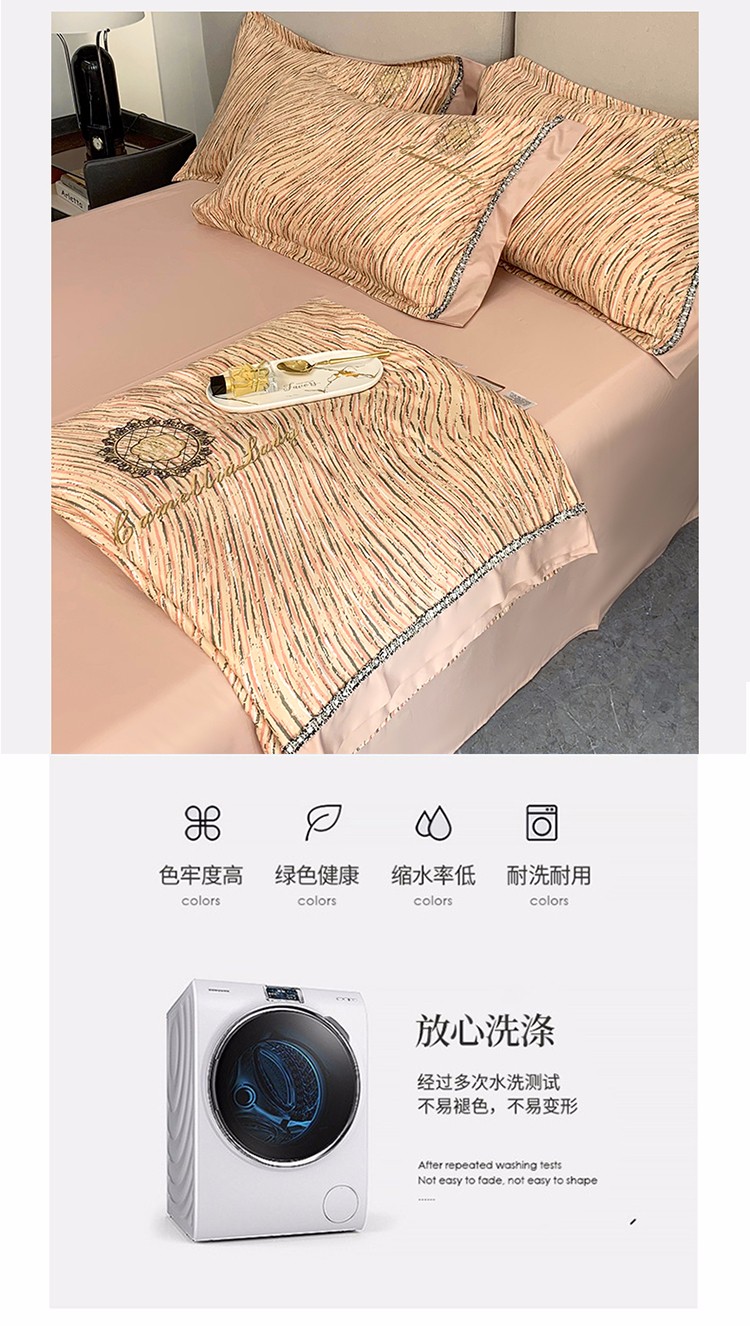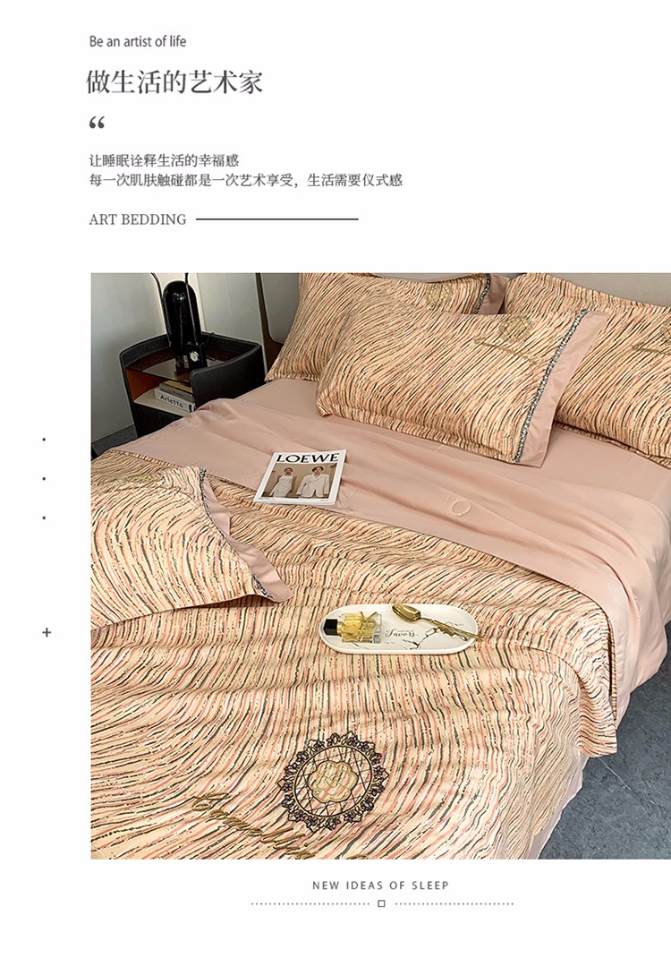 商品名称:澳洲羽 2024新款小香风刺绣夏被四件套 螺纹-猫橘