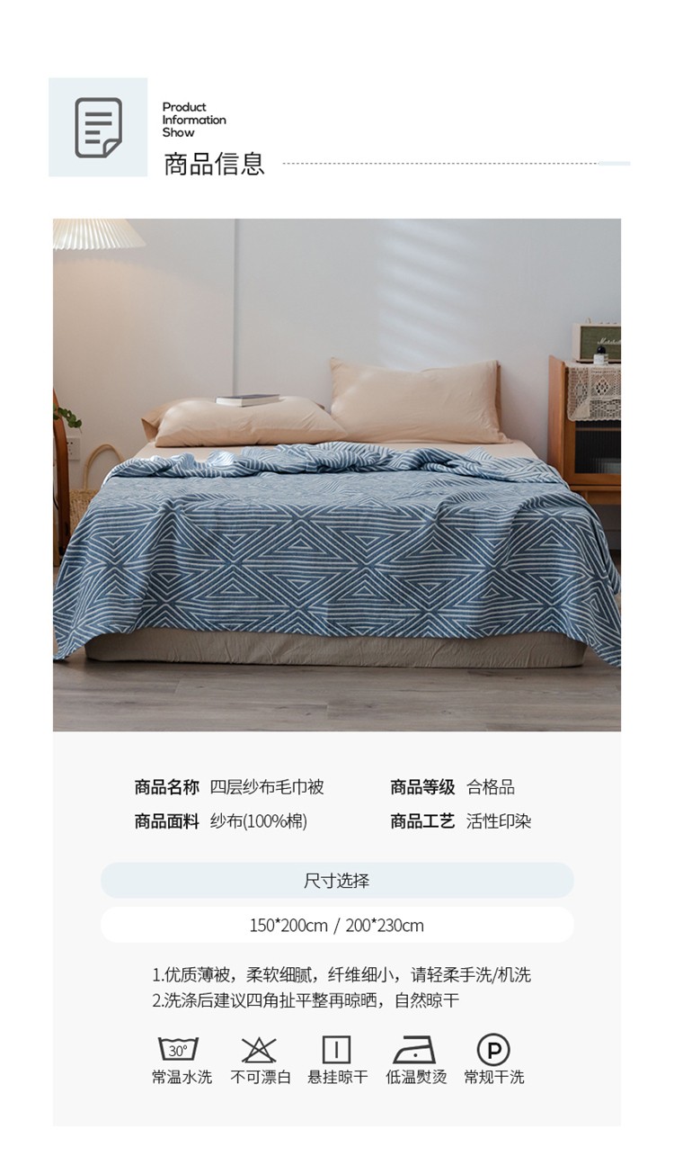 商品名称:雯雨 2022新款无印风纱布毛巾被夏被直播 三角兰